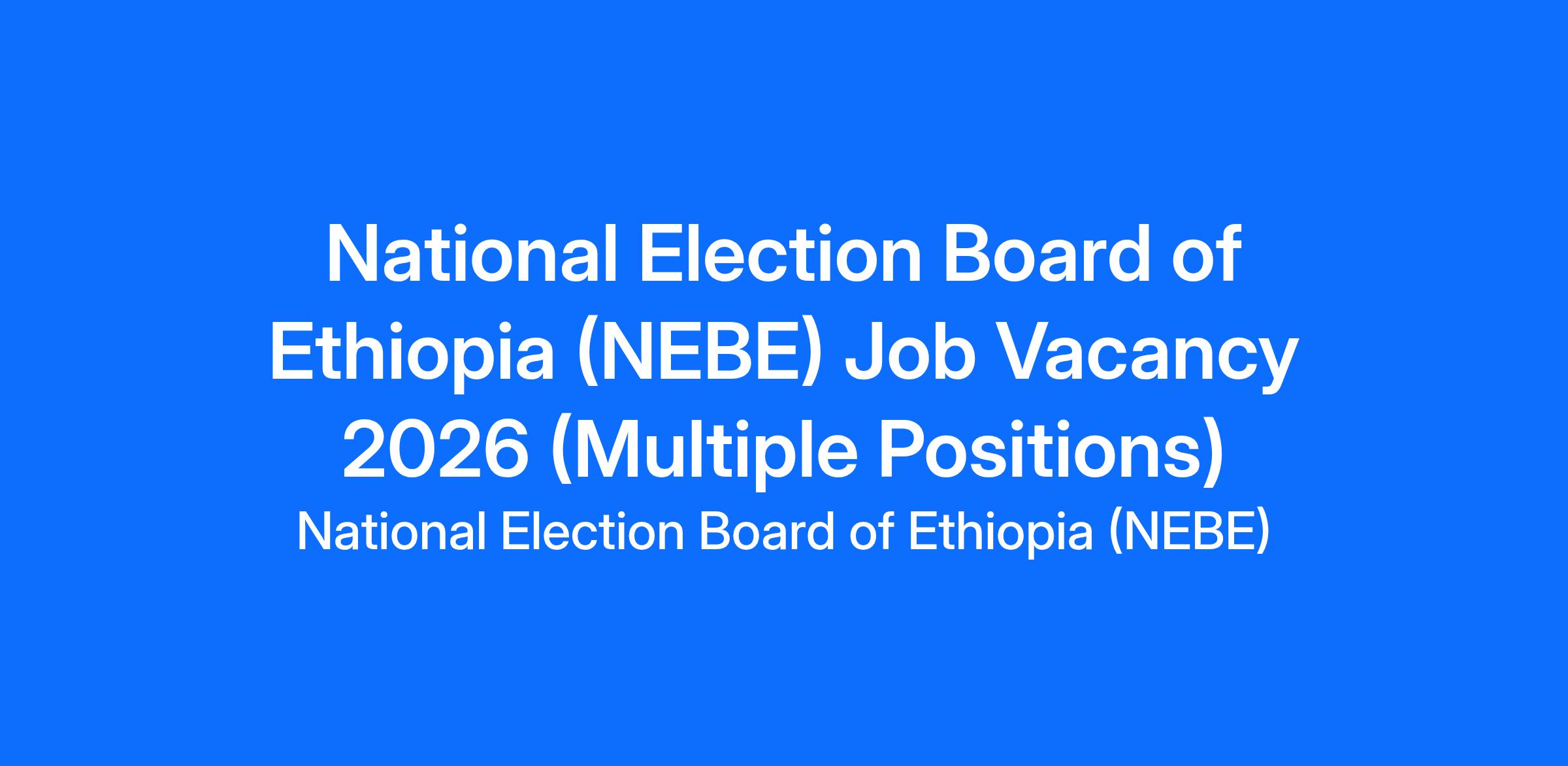 The National Election Board of Ethiopia (NEBE), re-established by proclamation No. 1133/2011, is the constitutionally mandated body to conduct elections, organize referendums, and regulate political parties in Ethiopia. NEBE is strengthening its institutional capacity with a focus on human resource development and invites qualified candidates to apply for the following positions.