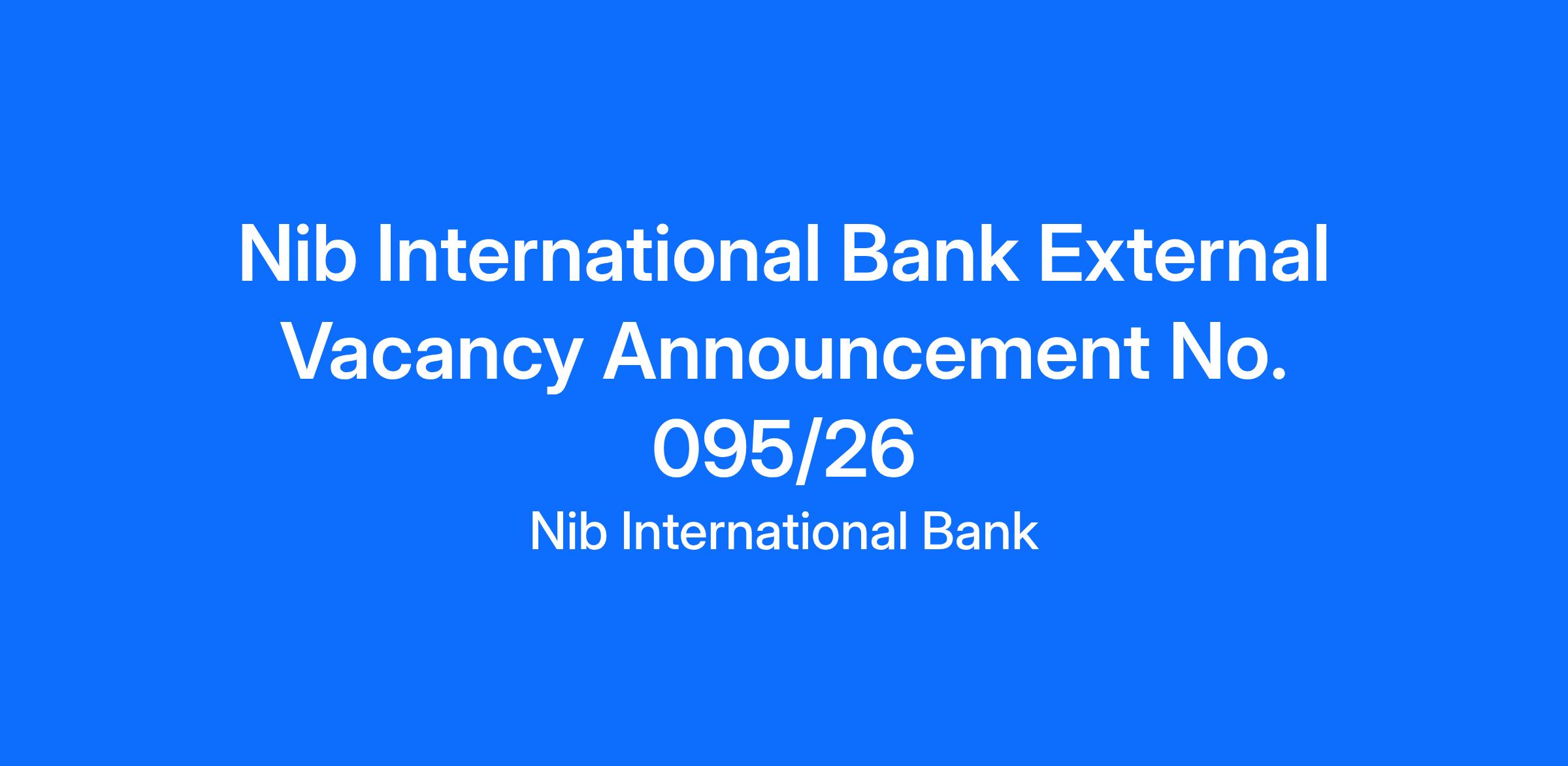 Nib International Bank S.C – External Vacancy Announcement No. 095/26