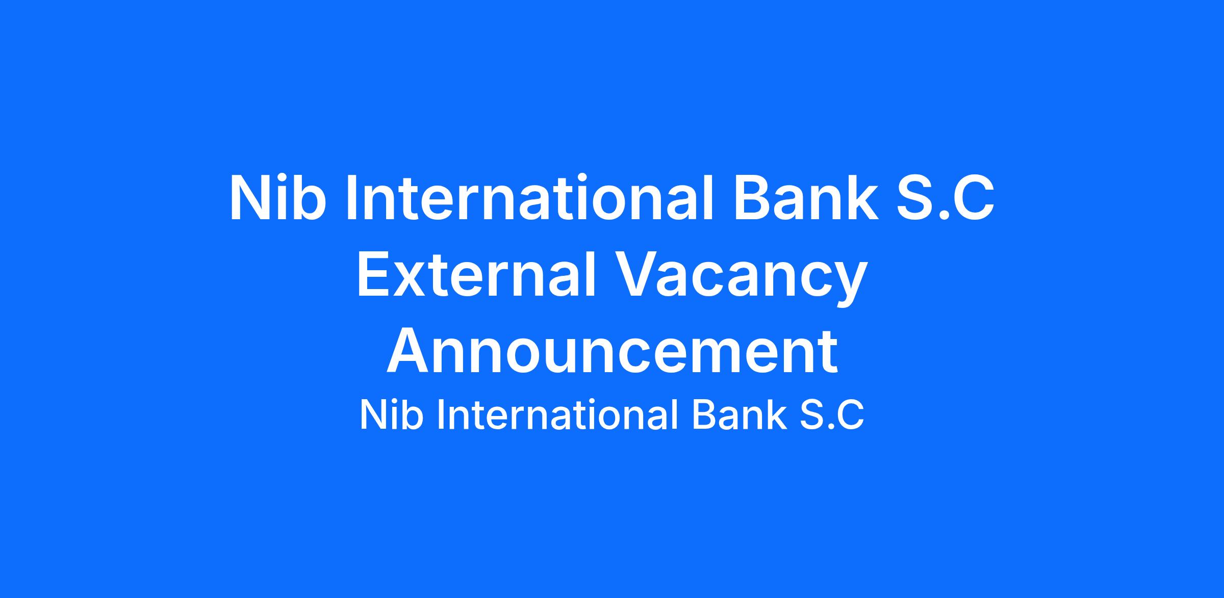Nib International Bank S.C External Vacancy Announcement