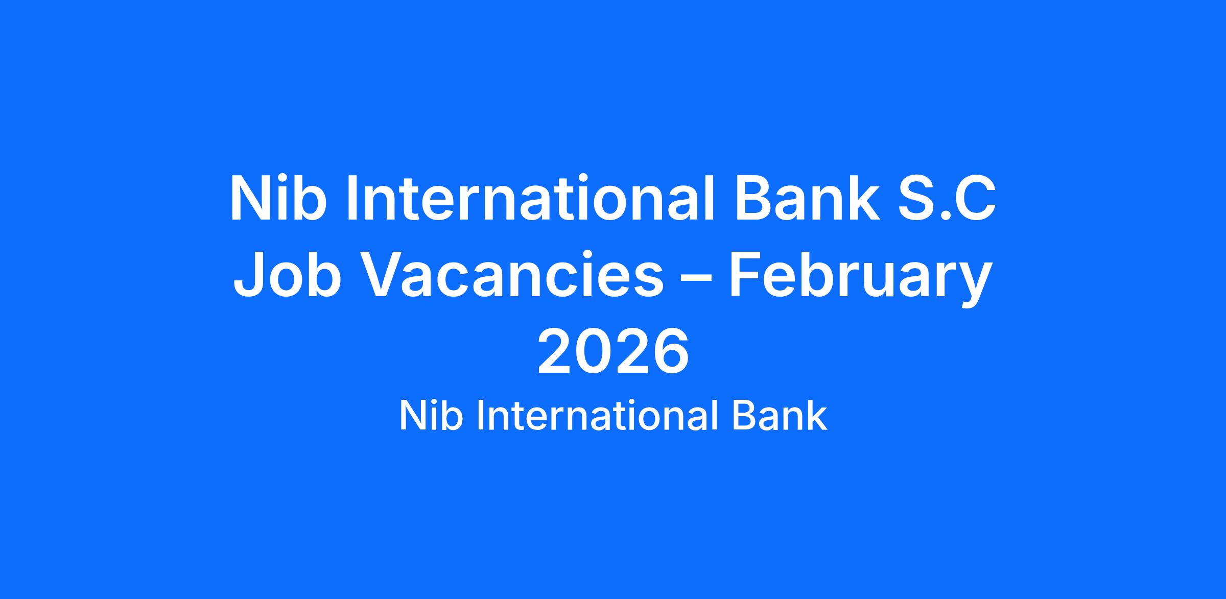 Nib International Bank S.C Job Vacancies – February 2026