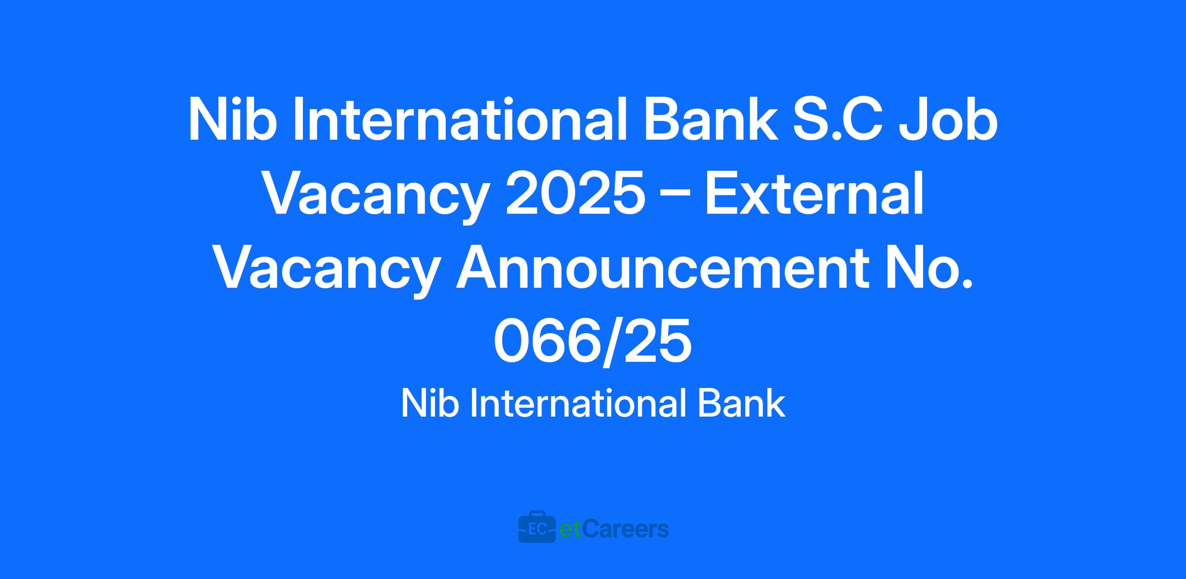 Nib International Bank S.C Job Vacancy 2025 – External Vacancy Announcement No. 066/25