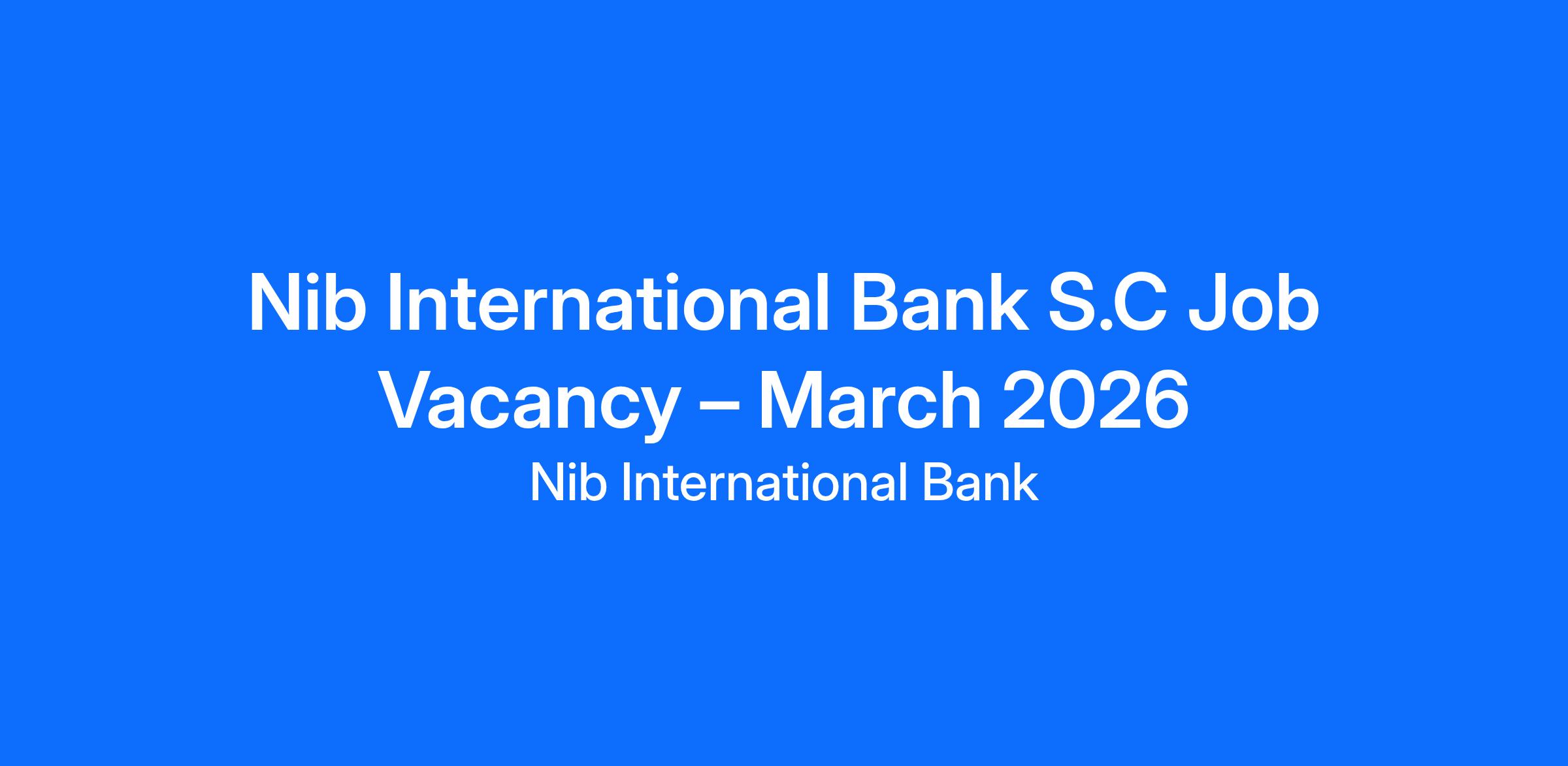 🌟 Nib International Bank S.C Job Vacancy – March 2026