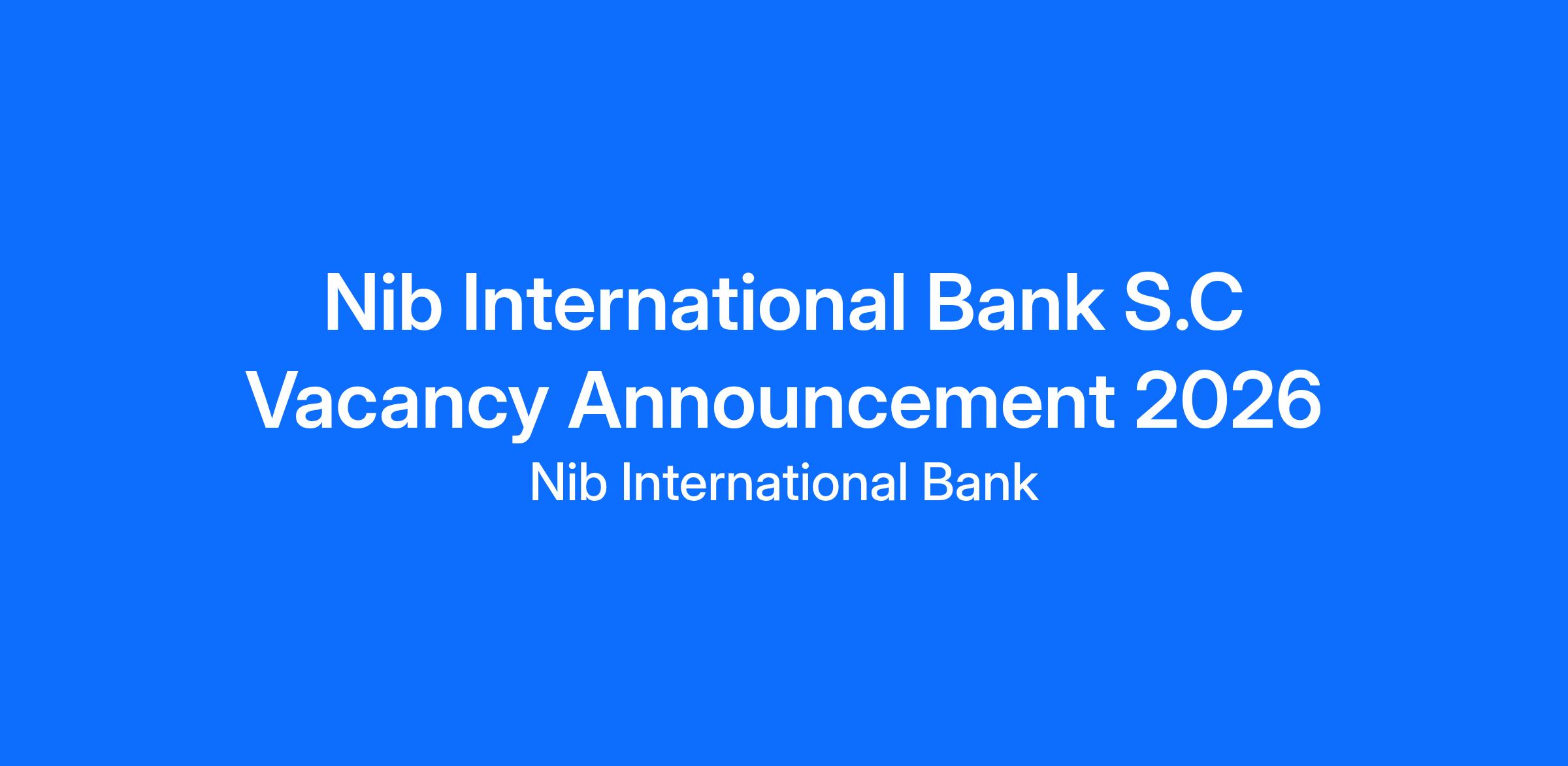 Nib International Bank S.C Vacancy Announcement 2026