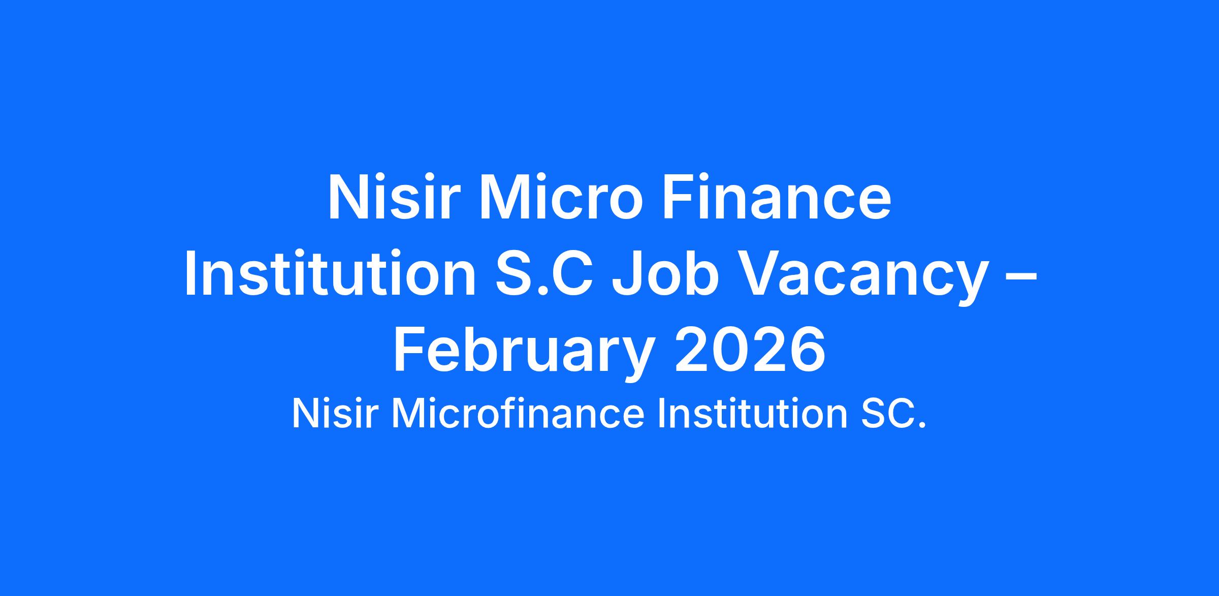 Nisir Micro Finance Institution S.C Job Vacancy – February 2026