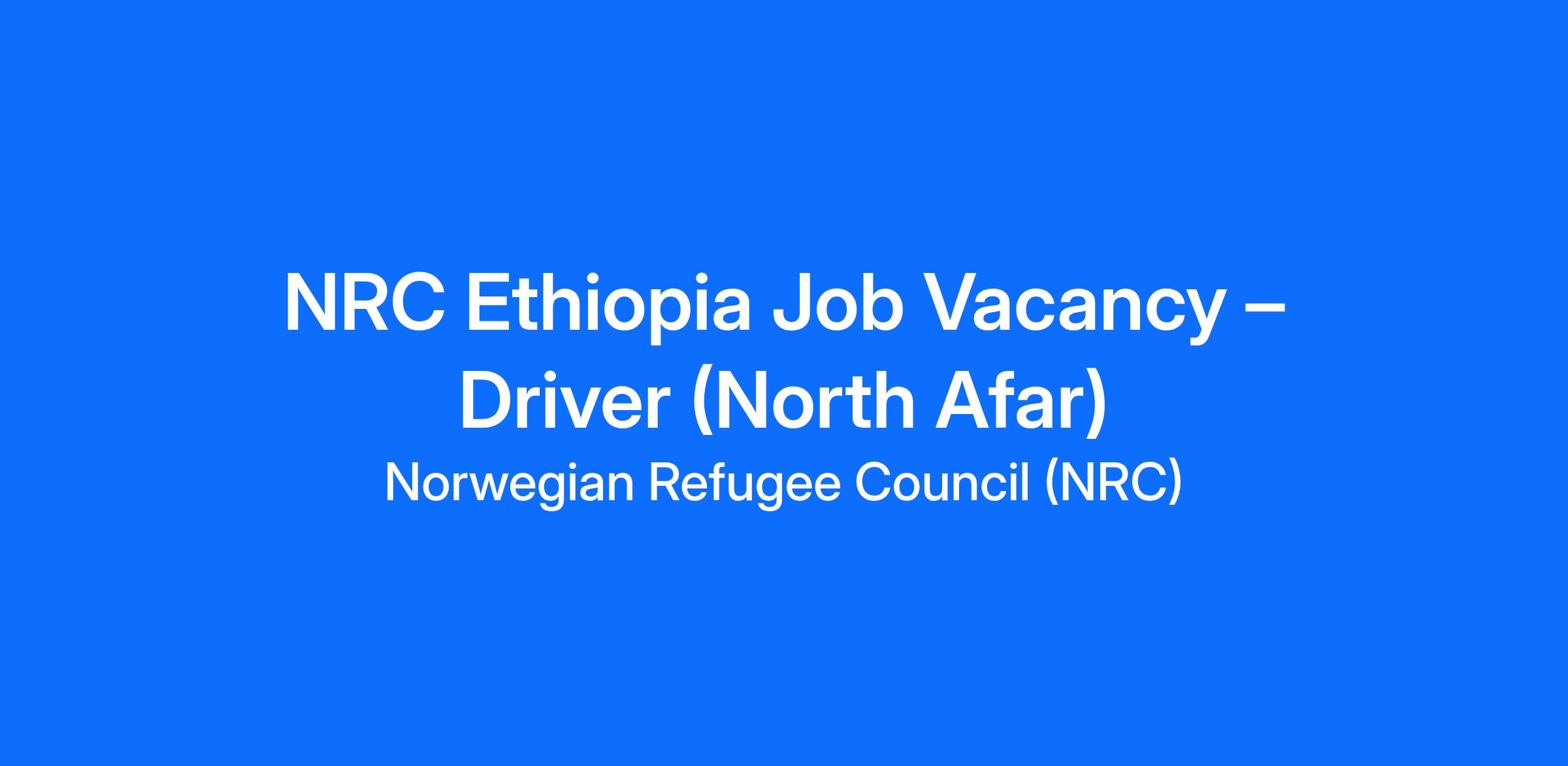 NRC Ethiopia Job Vacancy – Driver (North Afar)