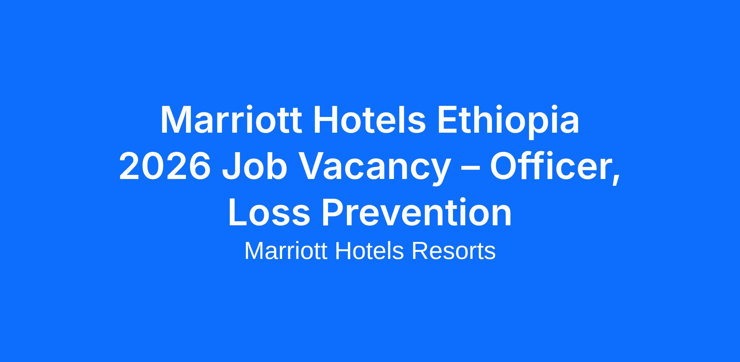 Etcareers is pleased to announce Marriott Hotels Resorts’ 2026 recruitment for Officer – Loss Prevention positions in Addis Ababa, Ethiopia. This full‑time role is central to ensuring guest safety, protecting company assets, and maintaining a secure environment across hotel operations. The Officer will patrol property areas, monitor security systems, respond to emergencies, and conduct investigations. Marriott Hotels, a global leader in hospitality, is seeking candidates with proven security experience and strong interpersonal skills to join its Addis Ababa team. This opportunity offers a chance to contribute to world‑class service standards while advancing a career in hotel security.