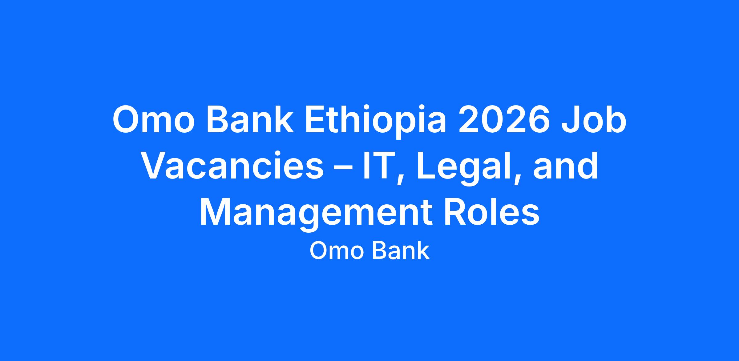 Omo Bank Ethiopia 2026 Job Vacancies – IT, Legal, and Management Roles