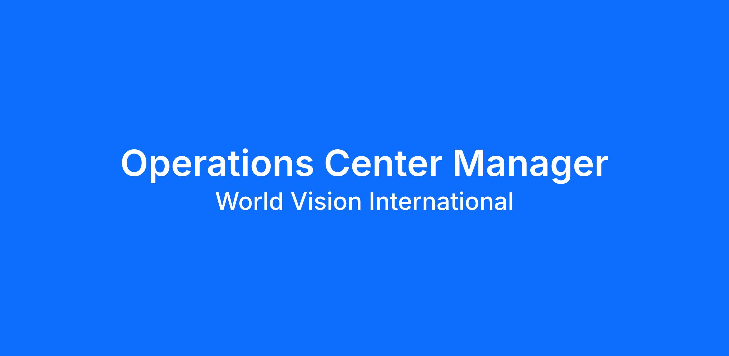 Operations Center Manager Vacancy at World Vision International