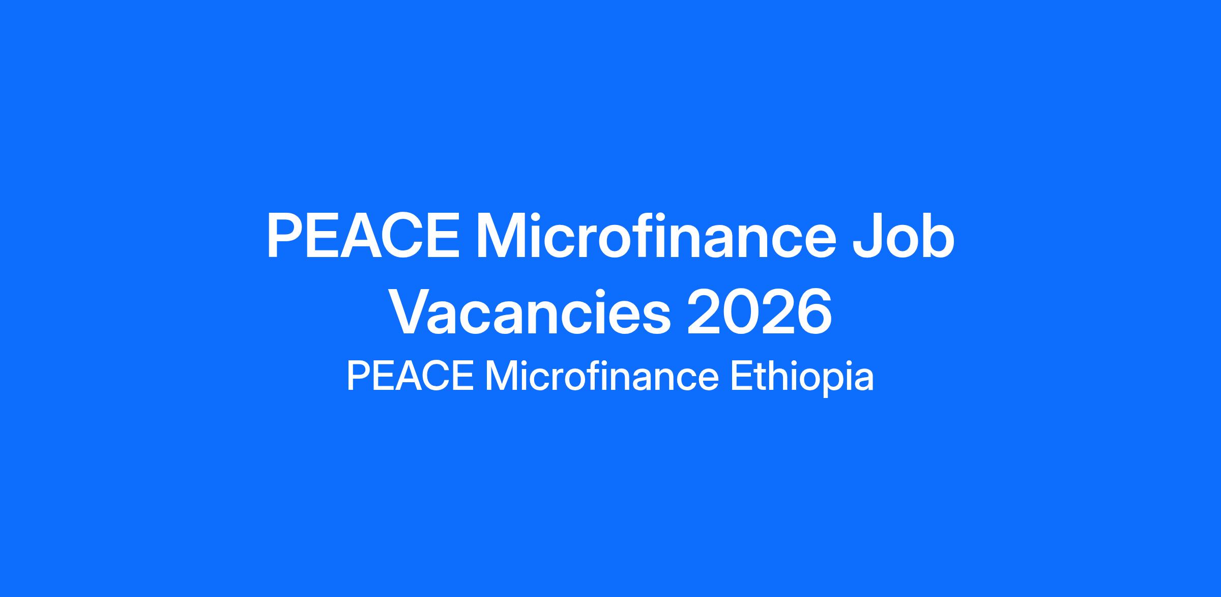 PEACE Microfinance Job Vacancies 2026