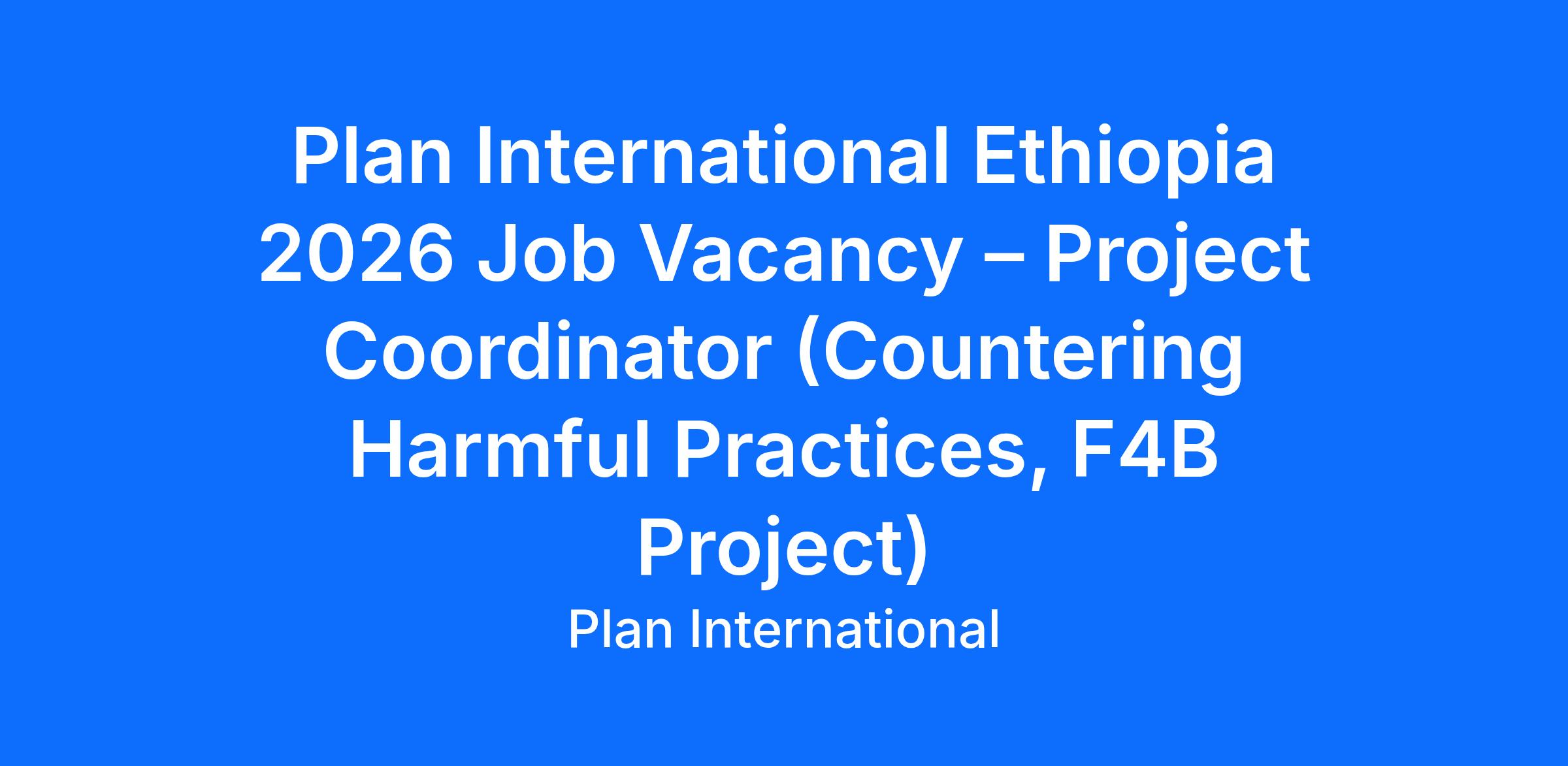 Plan International Ethiopia 2026 Job Vacancy – Project Coordinator (Countering Harmful Practices, F4B Project)