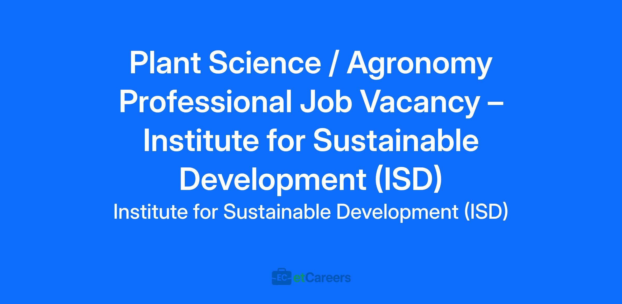 Plant Science / Agronomy Professional Job Vacancy – Institute for Sustainable Development (ISD)