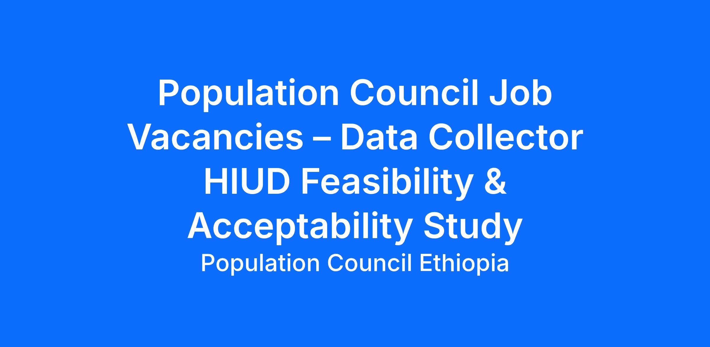 Apply via ethiojobs portal with the subject line: Data Collector – HIUD Study.