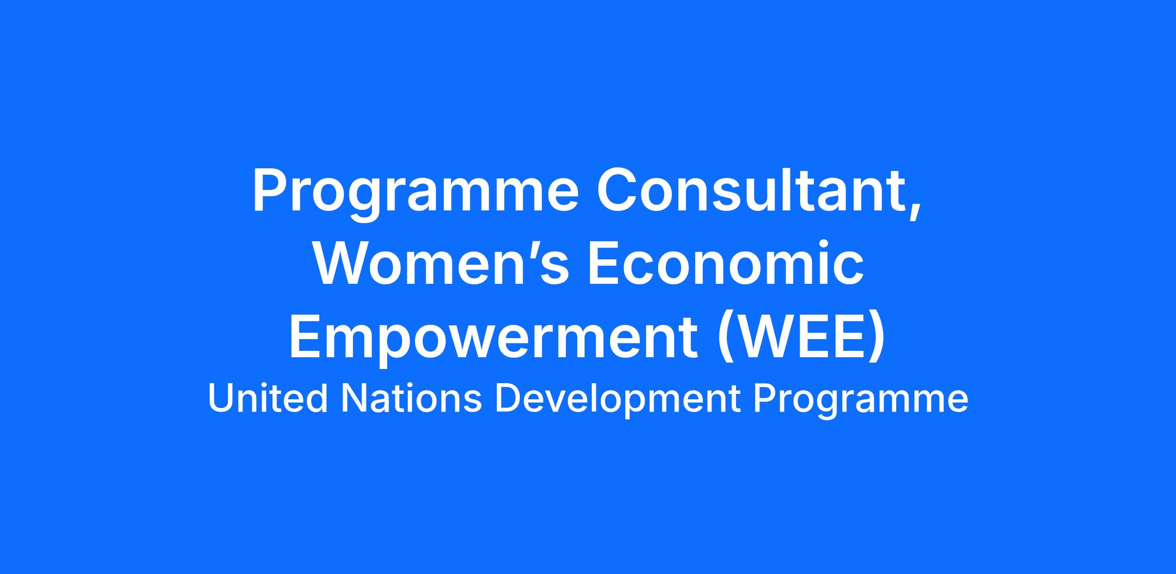 Programme Consultant, Women’s Economic Empowerment (WEE) vacancy at United Nations Development Programme