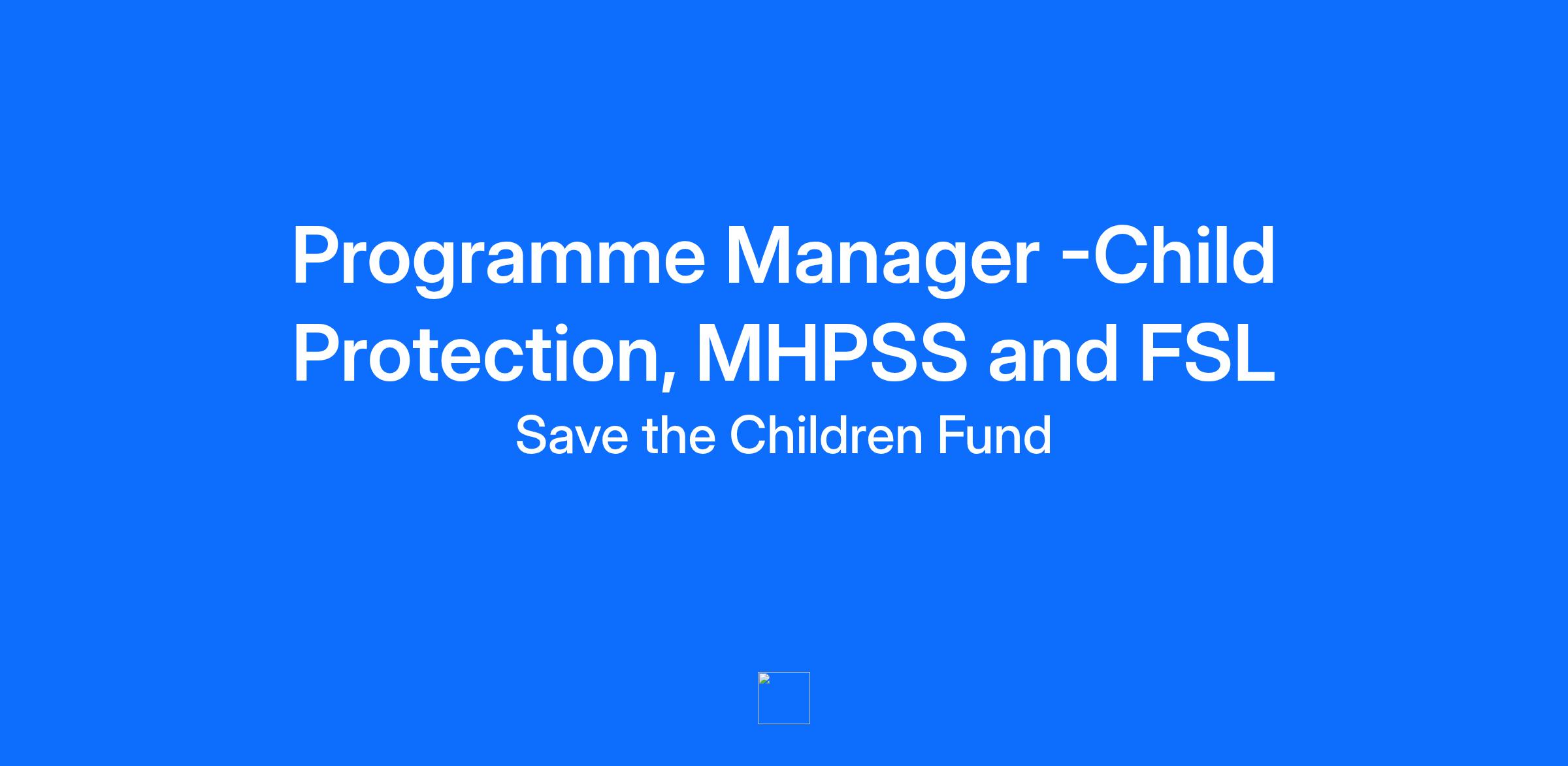 🌟 Save the Children Job Vacancy 2026 – Programme Manager (Child Protection, MHPSS & FSL)