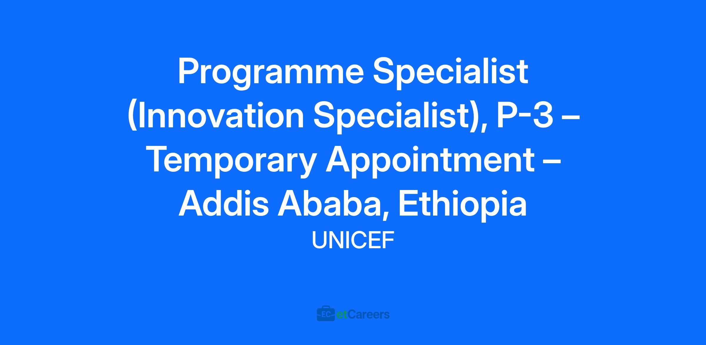 The Innovation Specialist (Programme Specialist, P-3) will lead UNICEF Ethiopia’s innovation and digital transformation portfolio. The role focuses on managing innovation initiatives, advising on digital strategies, coordinating partnerships, and building staff and partner capacity to implement scalable, tech-enabled programs.