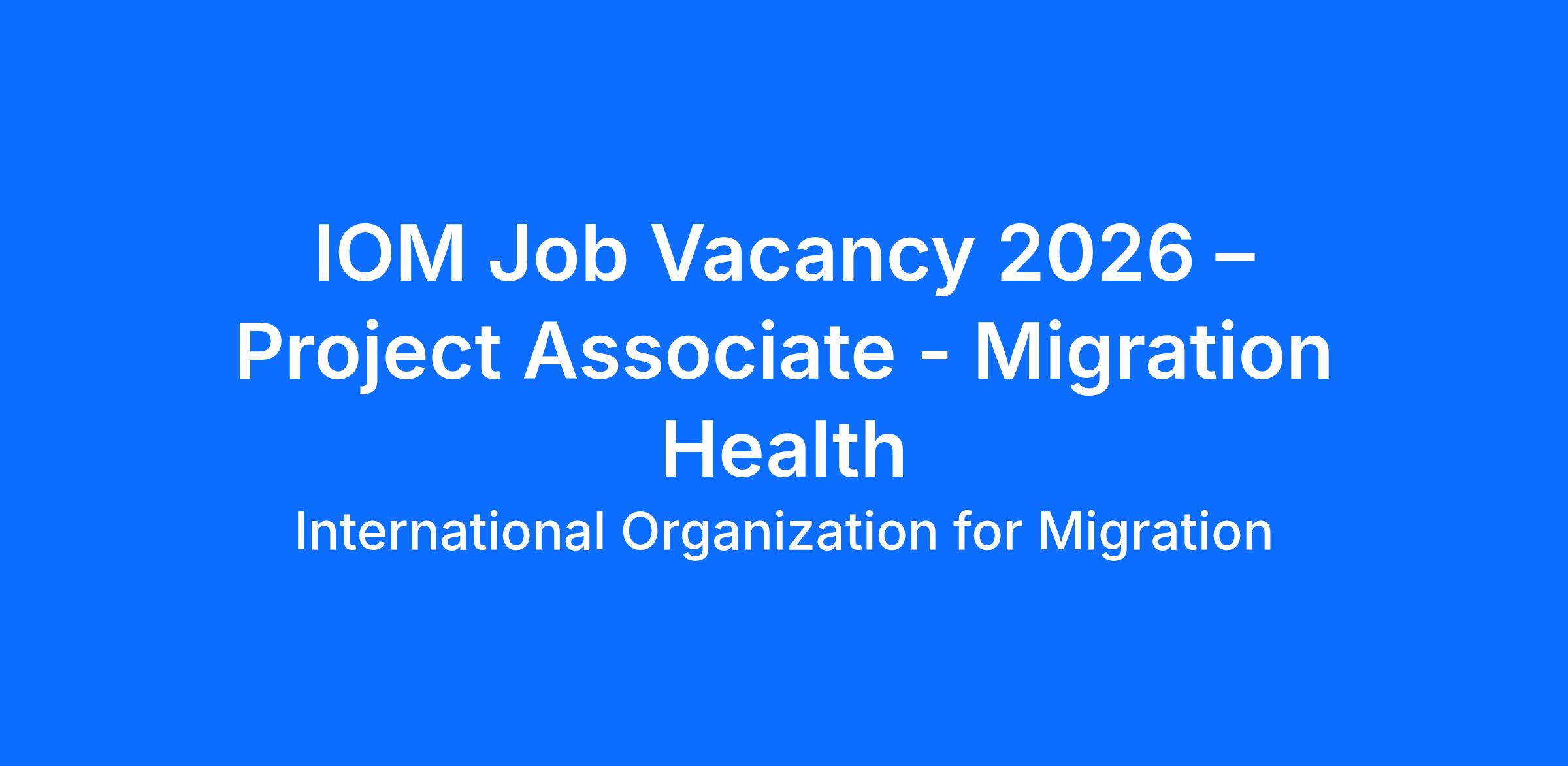 The International Organization for Migration (IOM) is seeking a Project Associate – Migration Health to support the implementation of health, nutrition, and MHPSS‑related projects in Ethiopia. This role contributes to delivering quality health services through IOM’s Mobile Health and Nutrition teams and other emergency health activities.