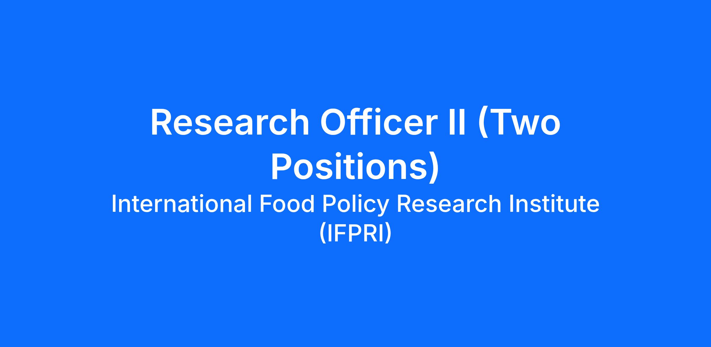 The International Food Policy Research Institute (IFPRI) is seeking to recruit two Research Officer II professionals to support research activities in development economics and agricultural economics.