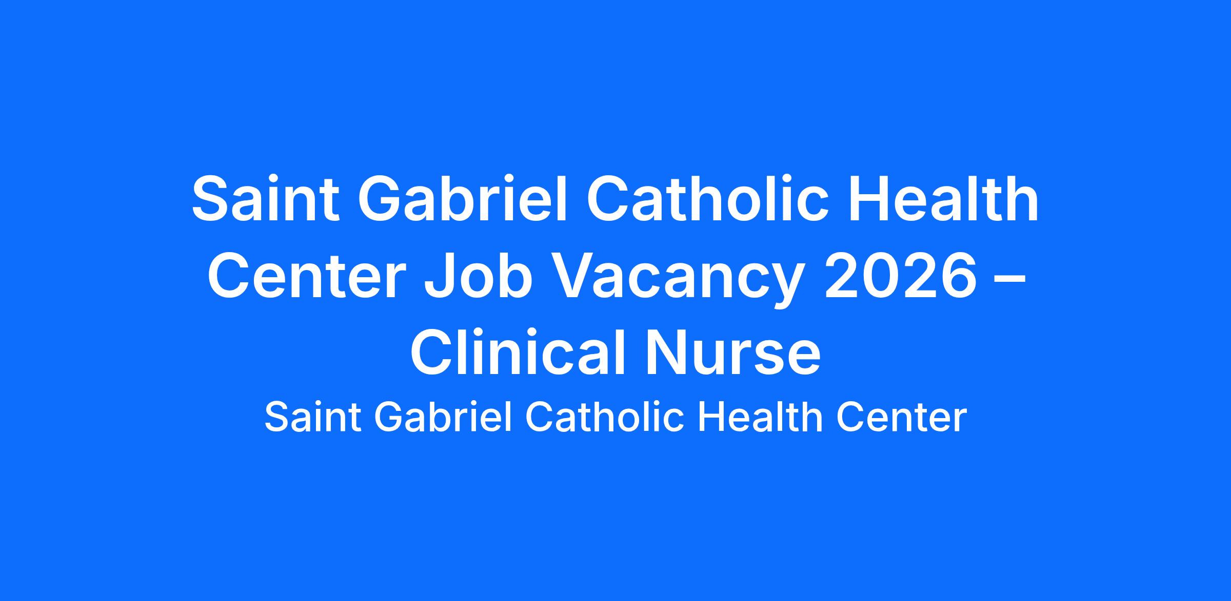 Saint Gabriel Catholic Health Center Job Vacancy 2026 – Clinical Nurse