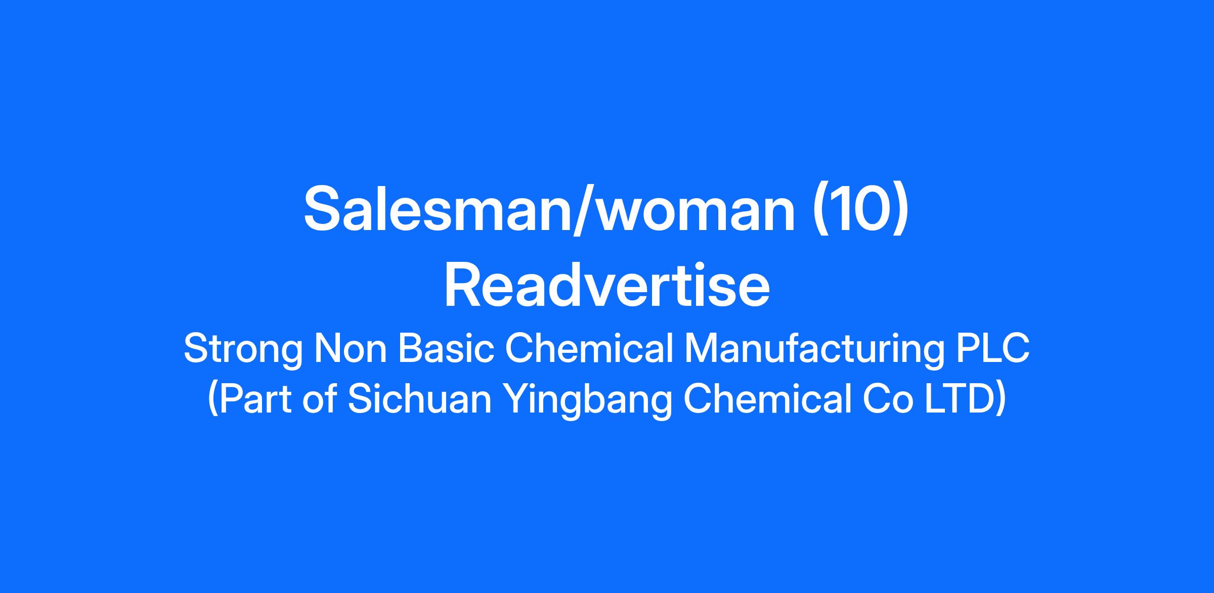 Strong Non-Basic Chemical Manufacturing PLC is a growing manufacturing company specializing in supplying construction chemicals, concrete admixtures, and related industrial solutions. We are seeking energetic and results-oriented Sales Officers to strengthen our commercial team.