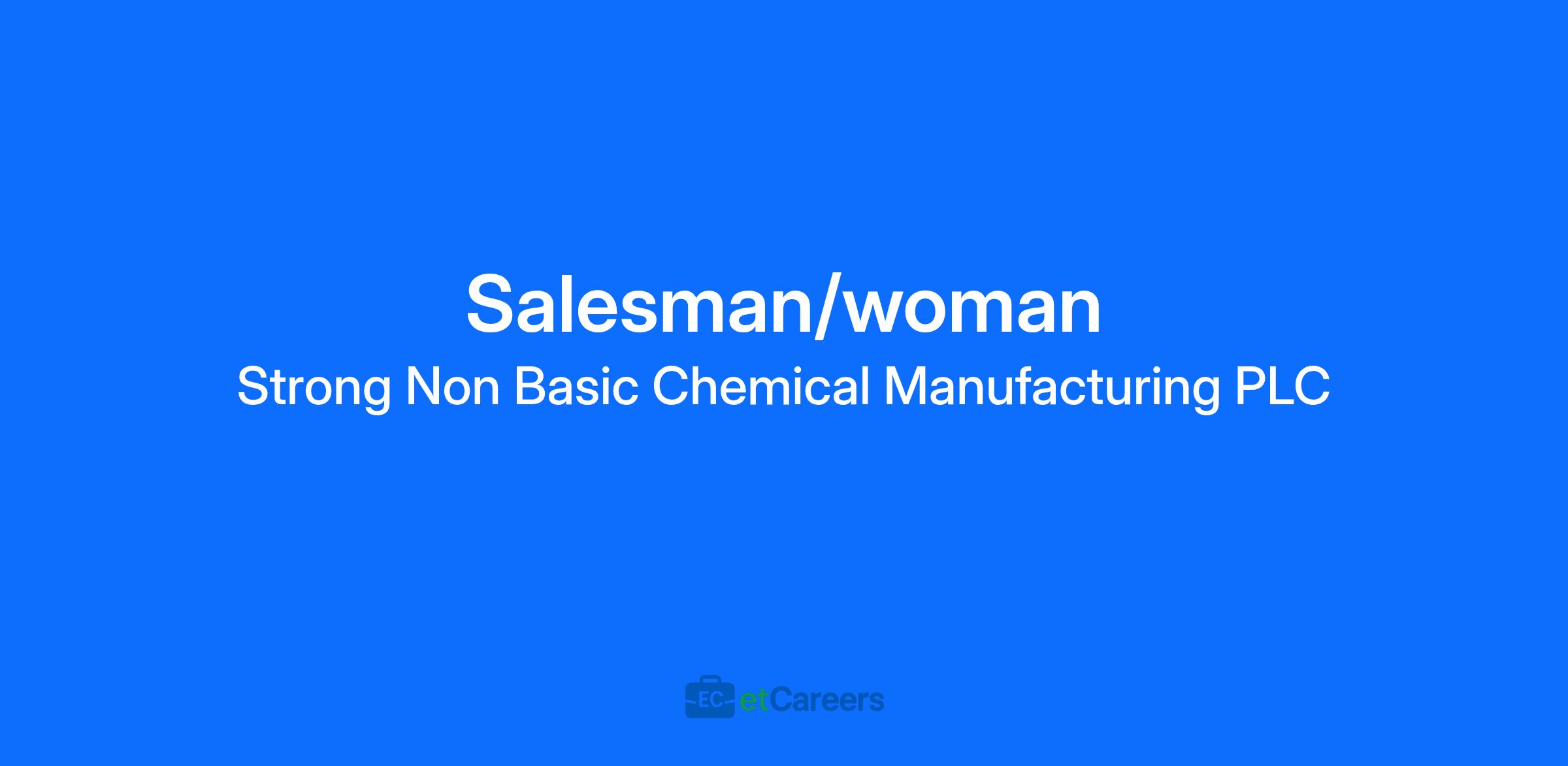 Strong Non Basic Chemical Manufacturing PLC / Yingbang Chemical is seeking a motivated Salesman/Woman to promote and sell our non-basic chemical products. Experience in FMCG, Real Estate, Admixture/Concrete, or Construction is a strong advantage.