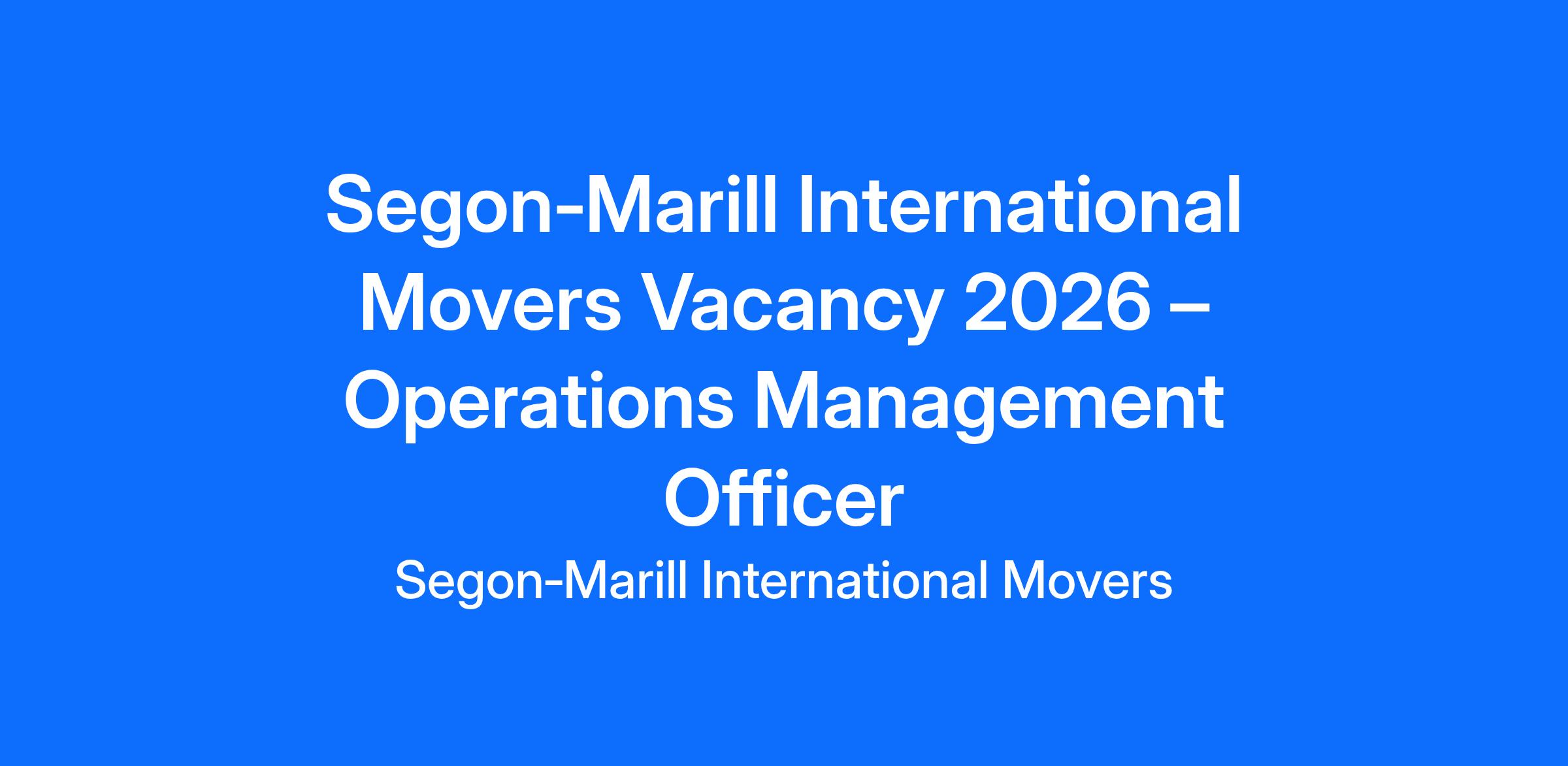 Segon‑Marill International Movers Vacancy 2026 – Operations Management Officer