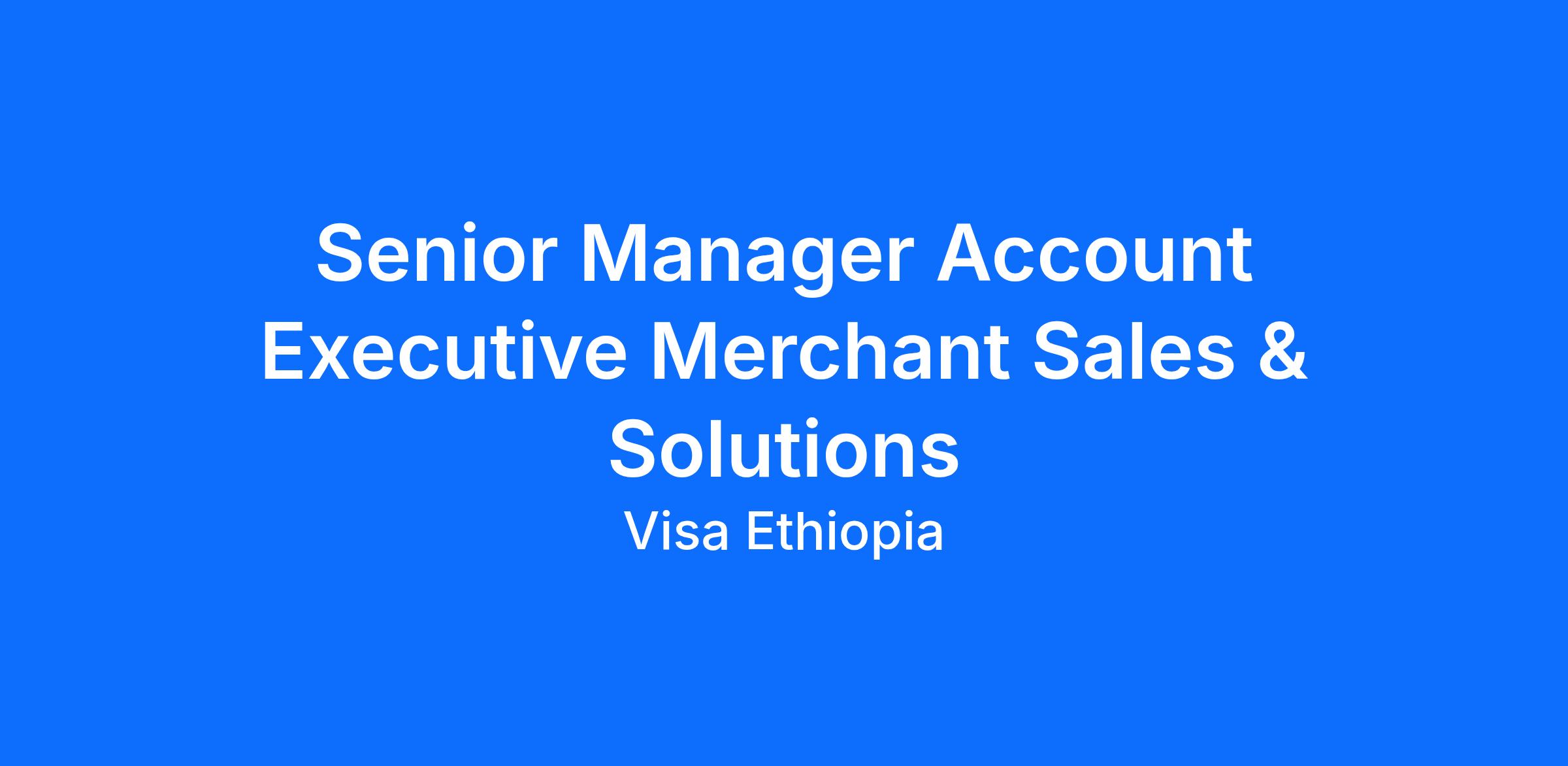 The company is seeking a Senior Manager Account Executive, Merchant Sales & Solutions (MS&A) to drive growth, manage strategic accounts, and deliver market leadership in Ethiopia.
