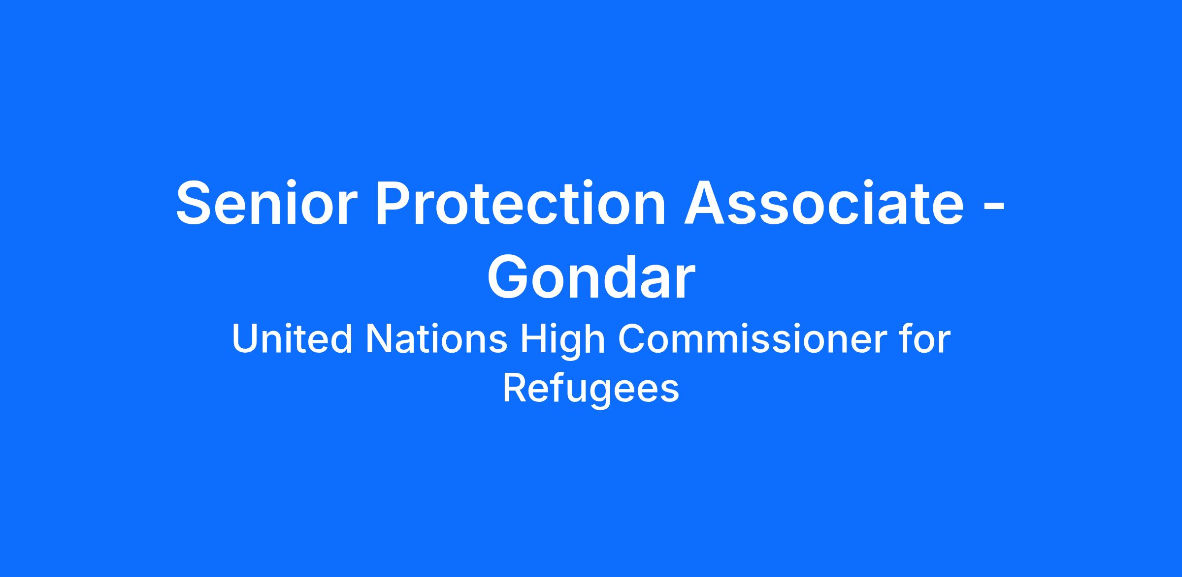 Senior Protection Associate - Gondar at UNHCR