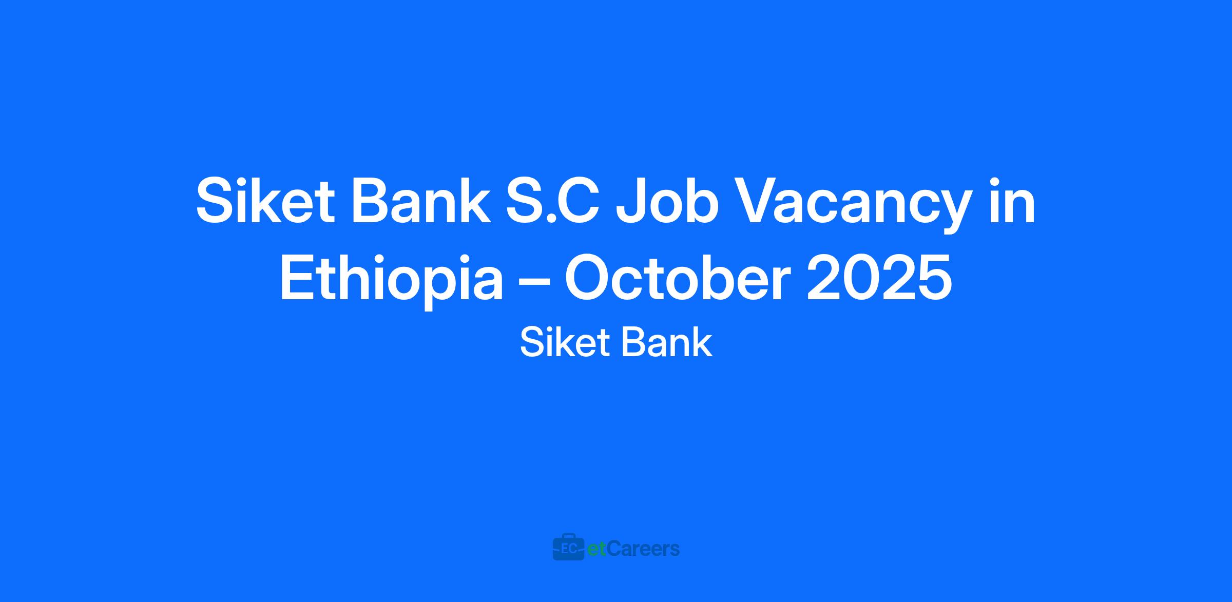 Siket Bank S.C Job Vacancy in Ethiopia – October 2025