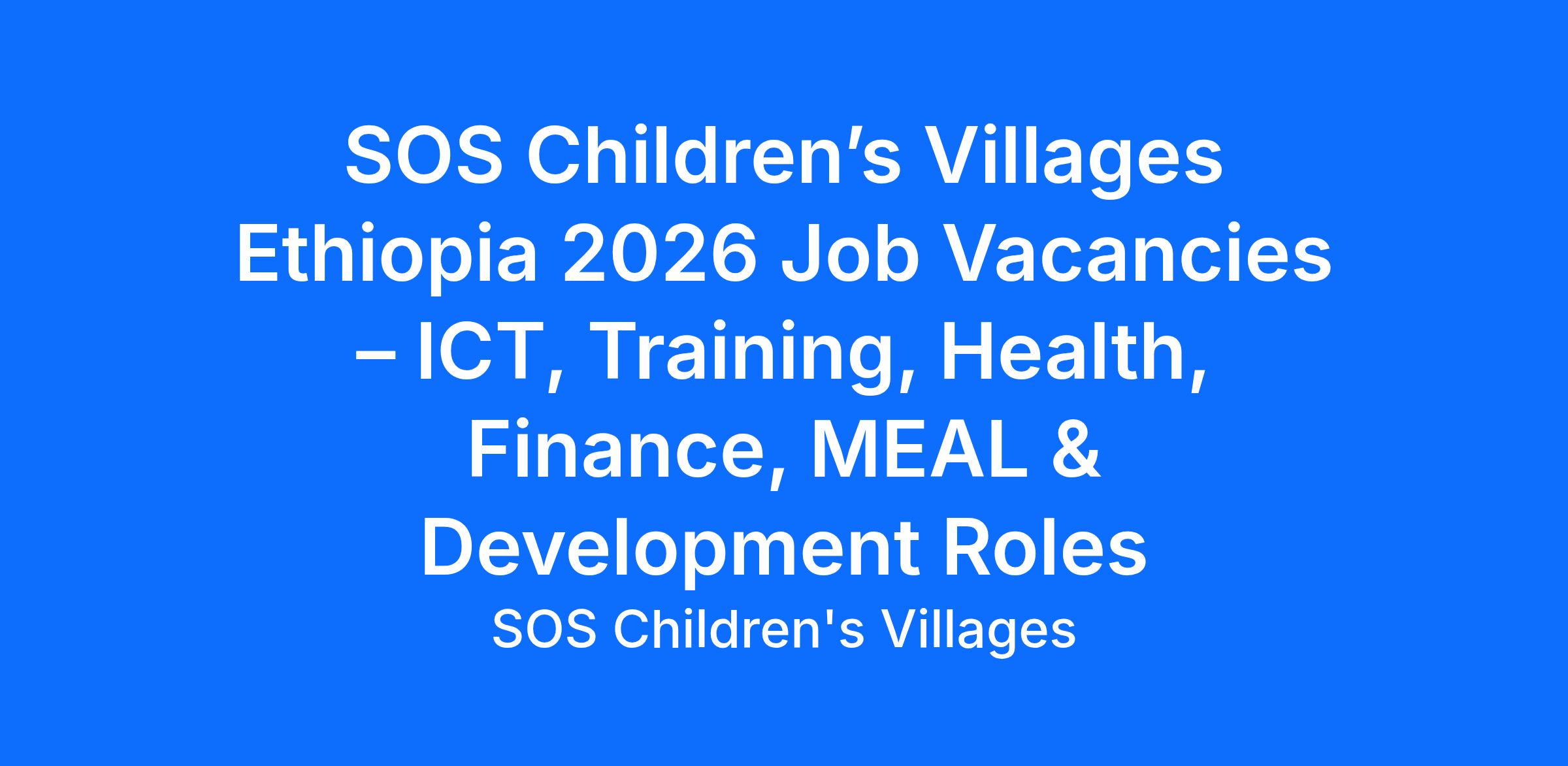 SOS Children’s Villages Ethiopia 2026 Job Vacancies – ICT, Training, Health, Finance, MEAL & Development Roles: Etcareers is pleased to publish a comprehensive vacancy announcement from SOS Children’s Villages Ethiopia for 2026. The organization, with a long history of supporting vulnerable children and families, is recruiting across Addis Ababa and Lalibela. Current openings include Project Coordinator for the Digital Horizon initiative, Trainers for Life, Business and Employability Skills, Project Health Officer, Project Cashier, Project MEAL Officer, and partnership calls for Digital Gig Work Platforms and Business Development Service Providers. These roles and consultancy opportunities provide a chance to contribute to safeguarding, youth empowerment, and sustainable development. Interested applicants should review requirements and apply before deadlines.