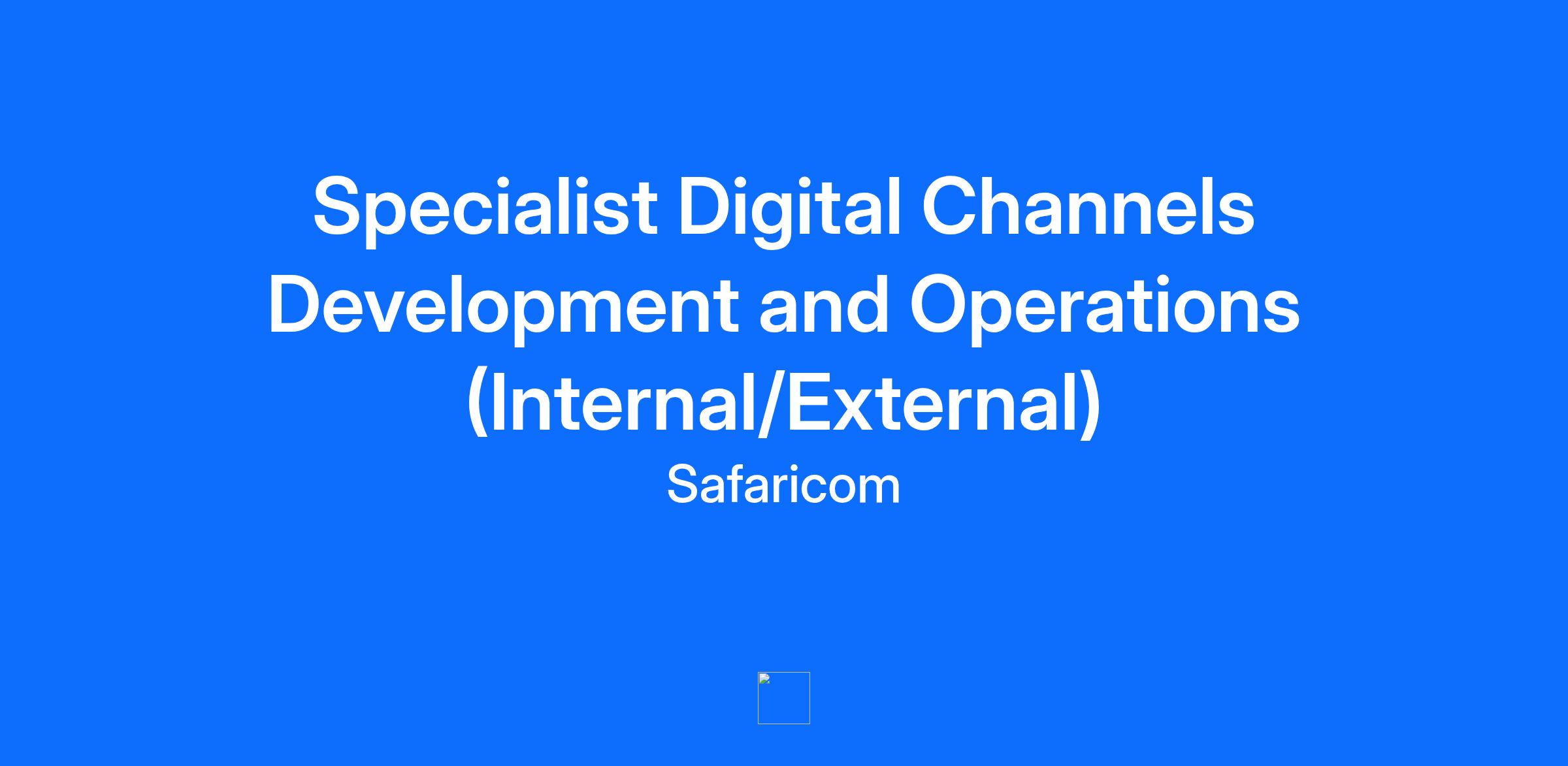Specialist Digital Channels Development and Operations (Internal/External)