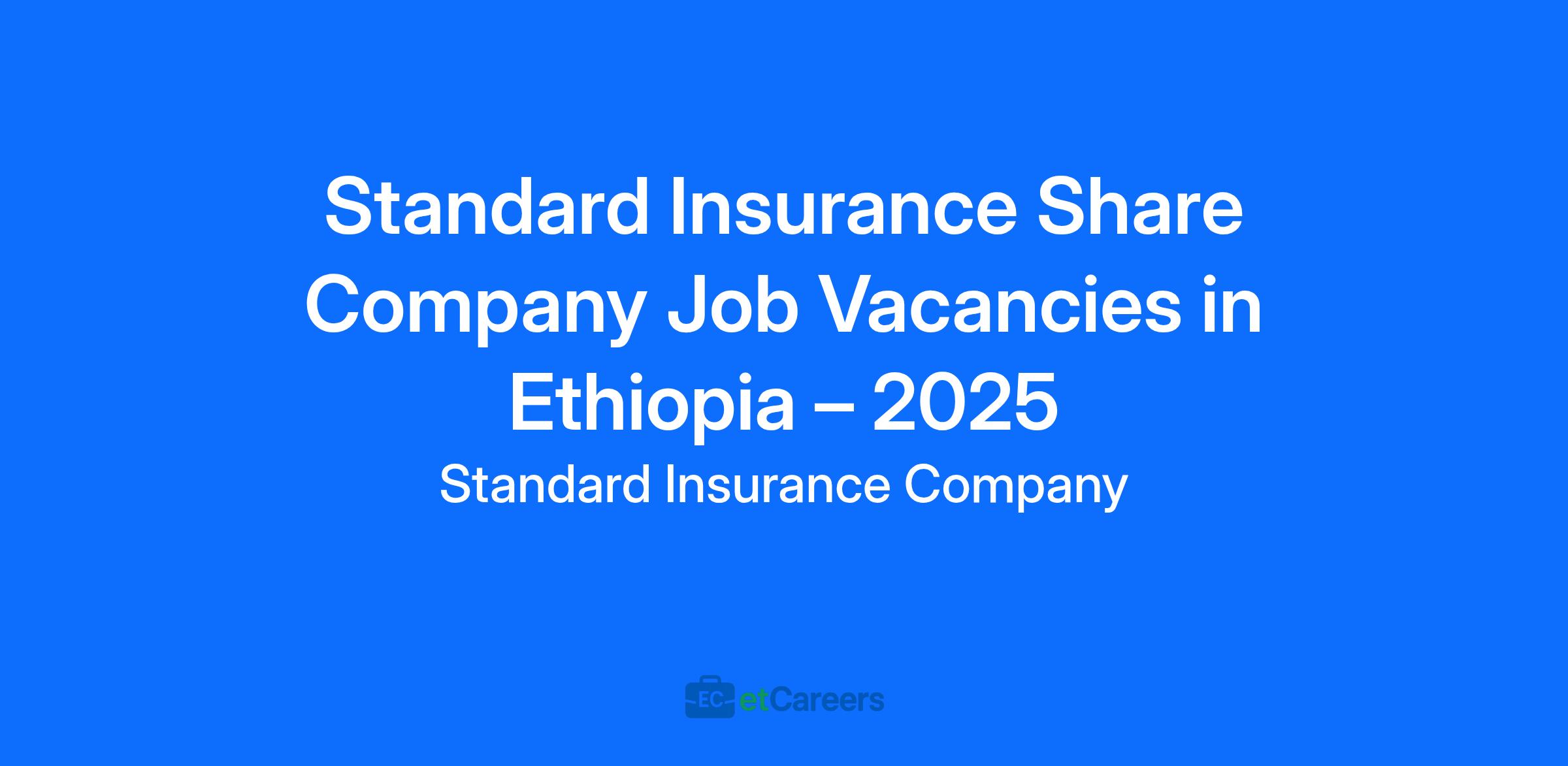 Standard Insurance Share Company Job Vacancies in Ethiopia – 2025