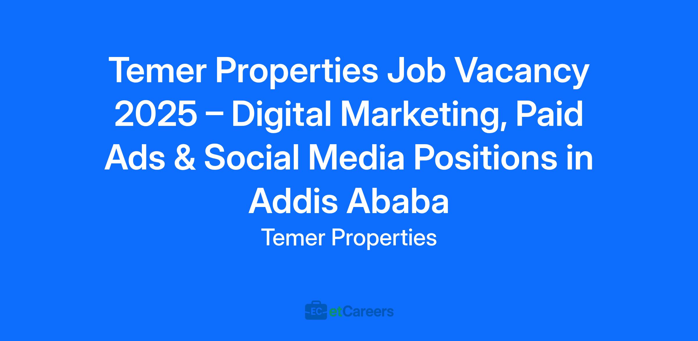 Temer Properties Job Vacancy 2025 – Digital Marketing, Paid Ads & Social Media Positions in Addis Ababa
