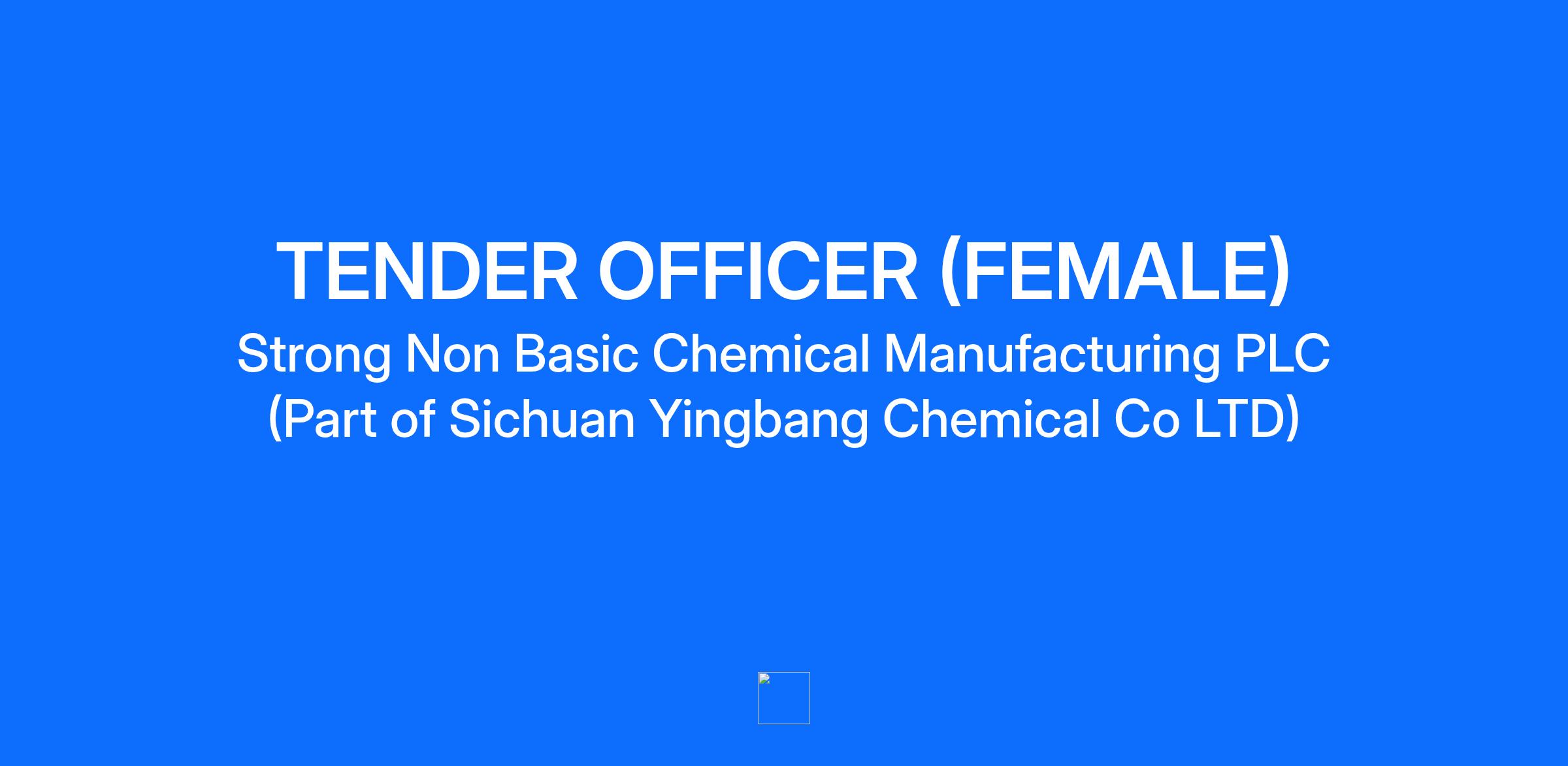 STRONG Non-Basic Chemical Manufacturing PLC invites qualified and motivated female candidates to apply for the position of Tender Officer.