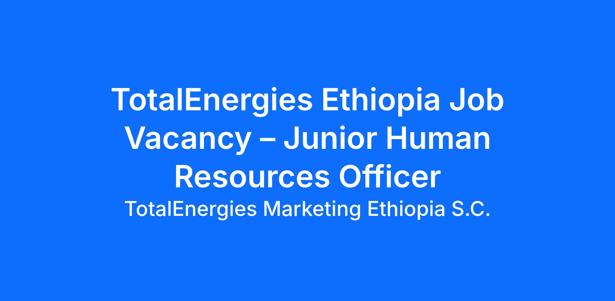 TotalEnergies Marketing Ethiopia S.C., a subsidiary of TotalEnergies operating in Ethiopia since 1950, is seeking a Junior Human Resources Officer to support HR operations, ensure compliance with labor laws and collective agreements, and contribute to employee welfare and development.