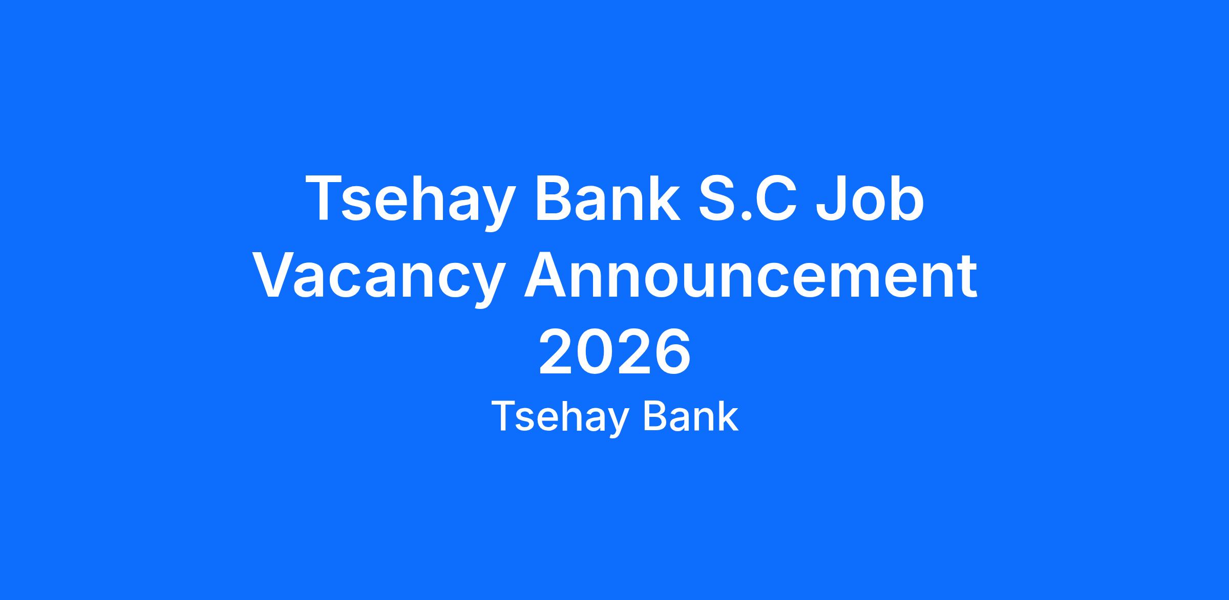 Tsehay Bank S.C. invites qualified and motivated candidates to apply for the following positions. The Bank is committed to delivering sustainable value to stakeholders through exceptional customer experience and advanced technology.