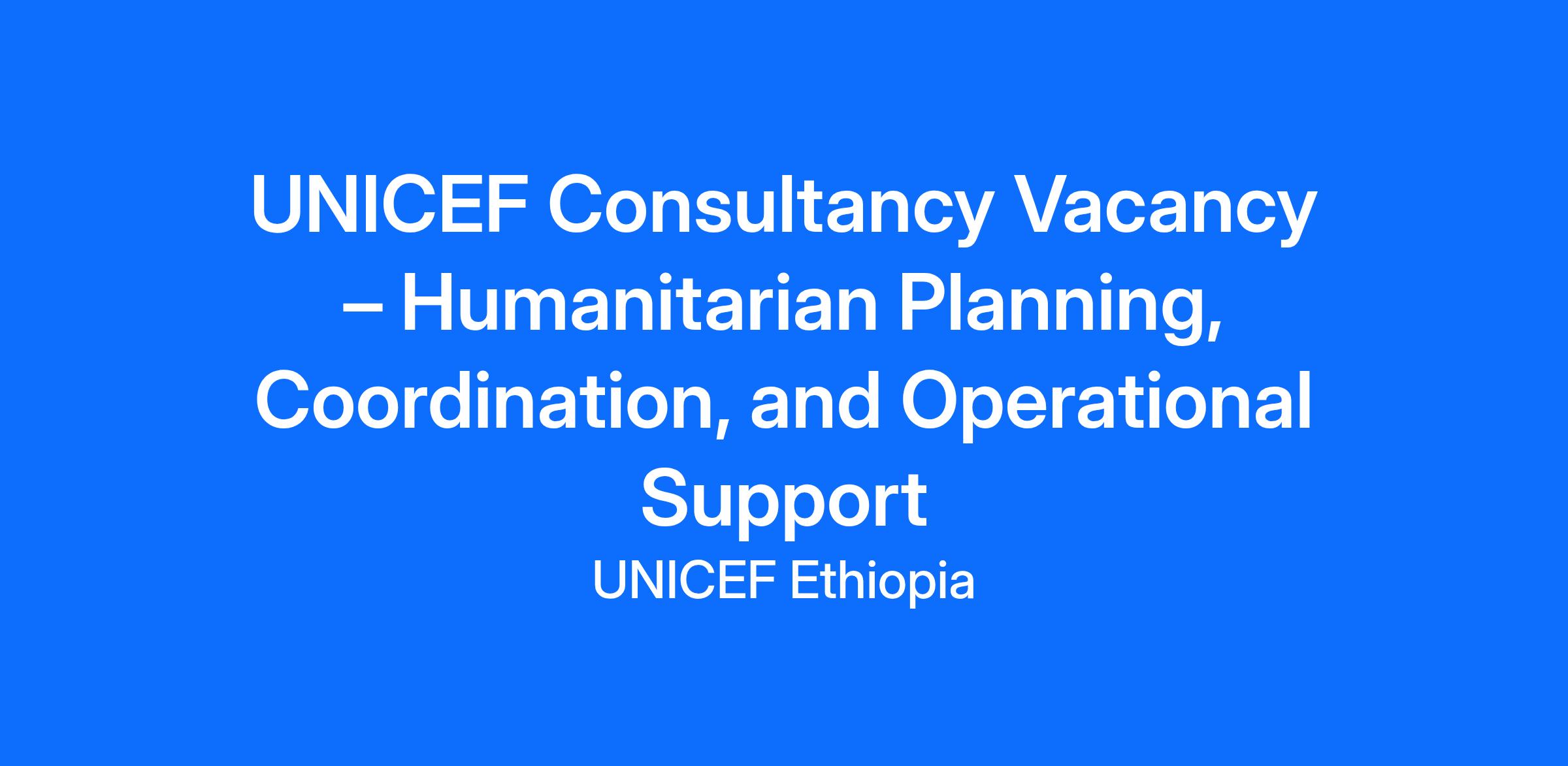 The consultant will provide targeted technical support to strengthen UNICEF Ethiopia’s humanitarian planning, coordination, and operational capacities.
