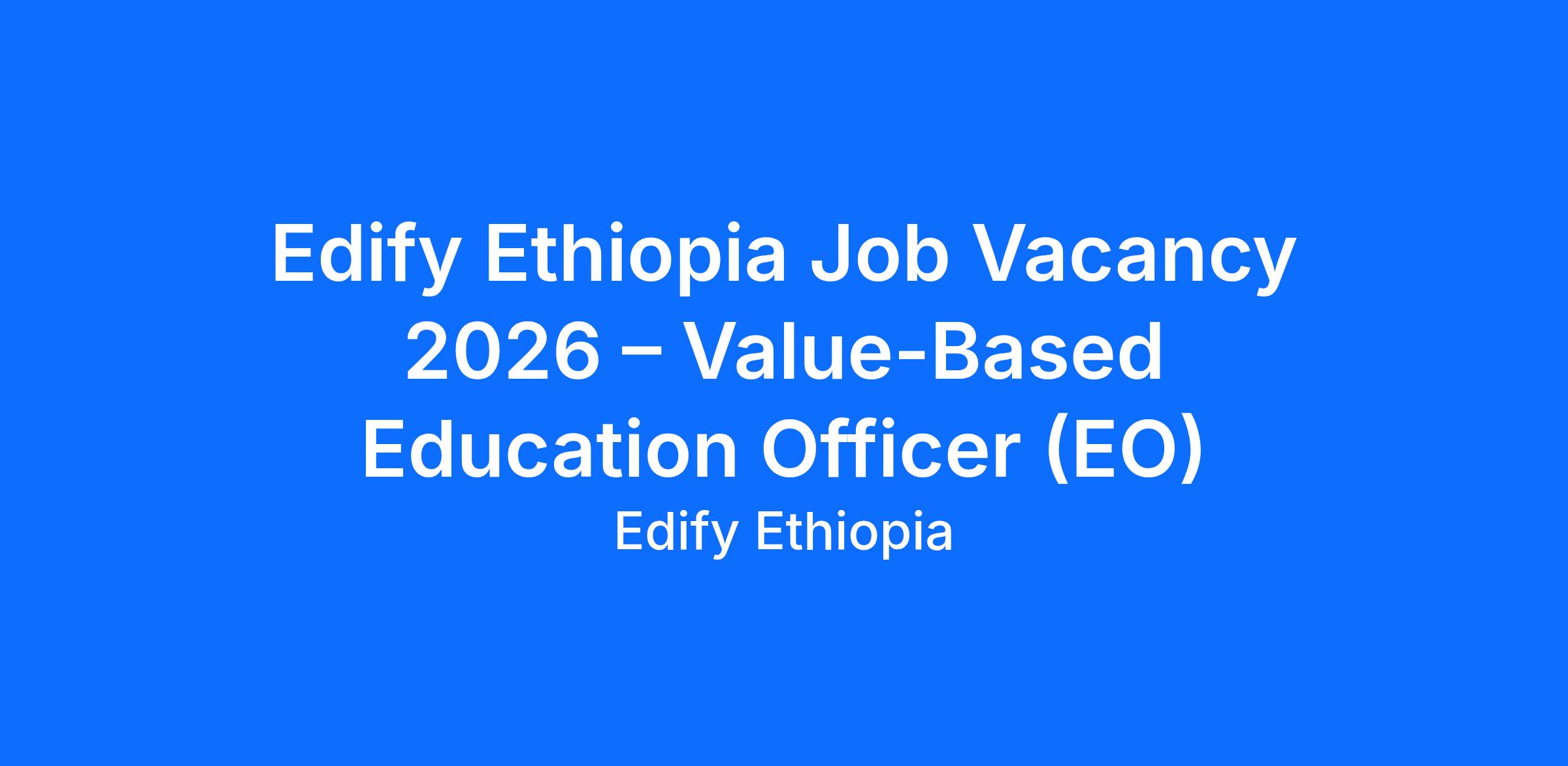 Edify Ethiopia is hiring a Value-Based Education Officer in Arbaminch (Southern Region) for 2026.