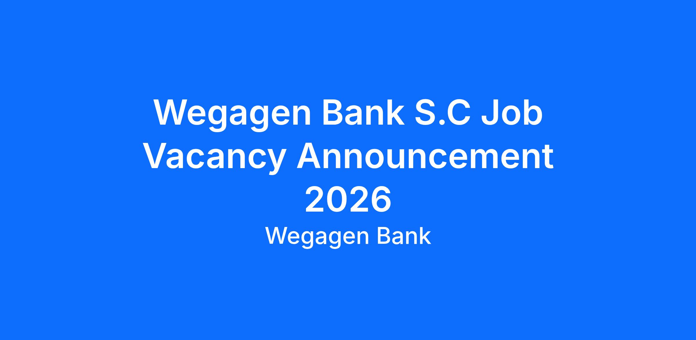 Wegagen Bank S.C Job Vacancy Announcement 2026