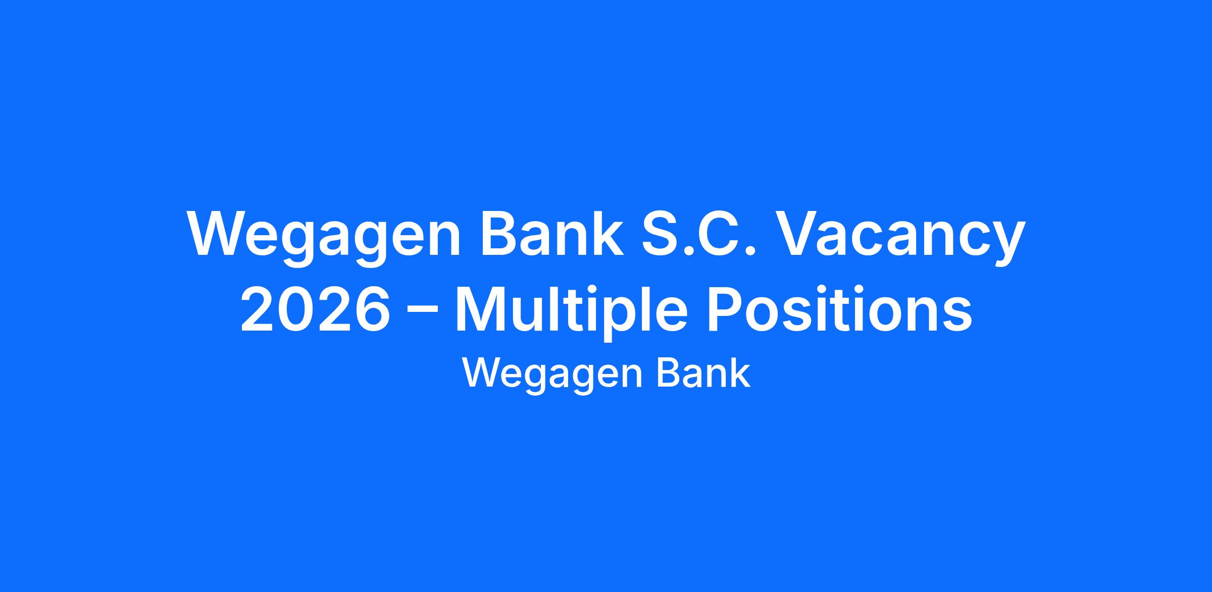 Wegagen Bank S.C. Vacancy 2026 – Multiple Positions