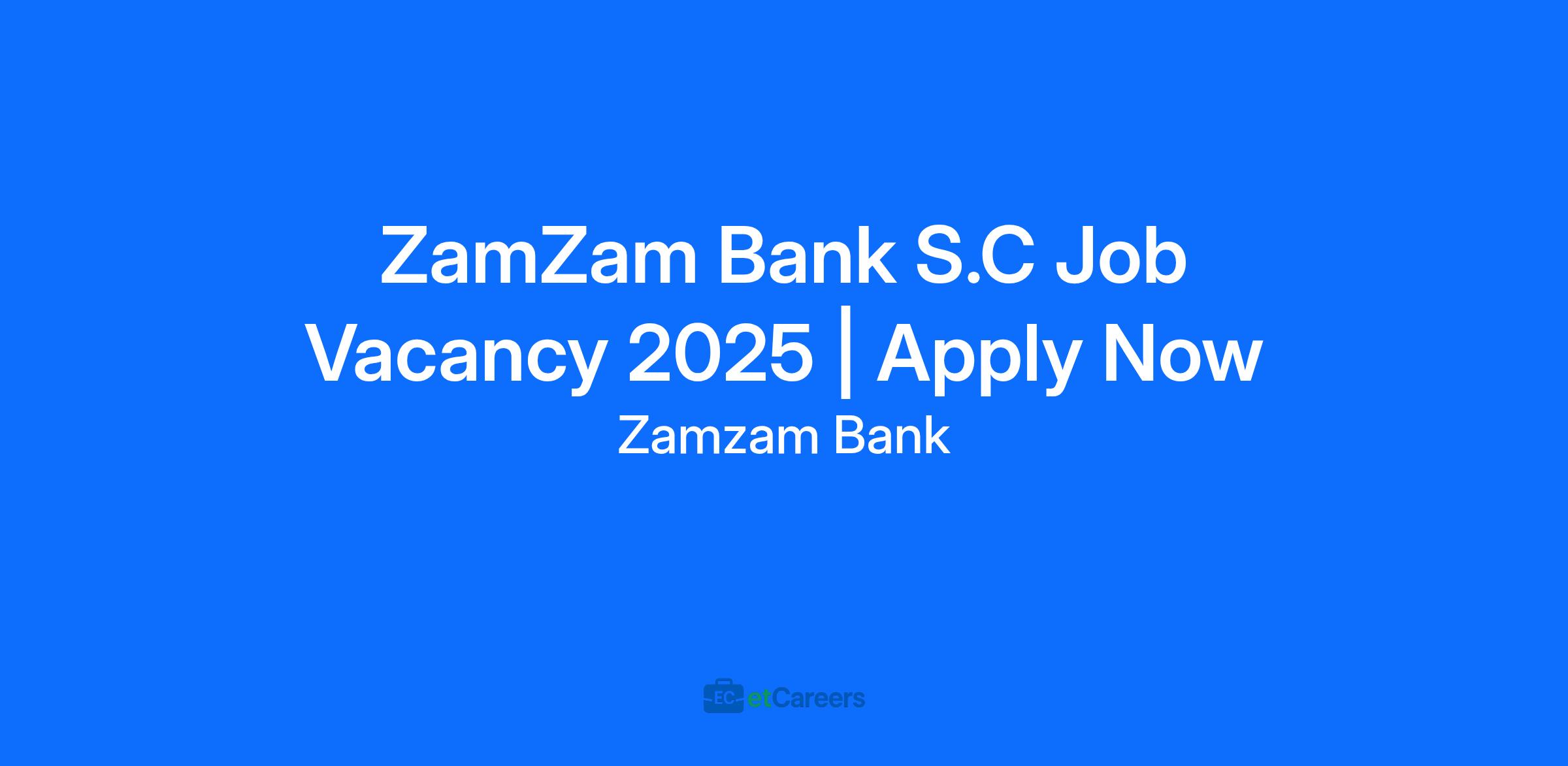 ZamZam Bank S.C Job Vacancy 2025 | Apply Now