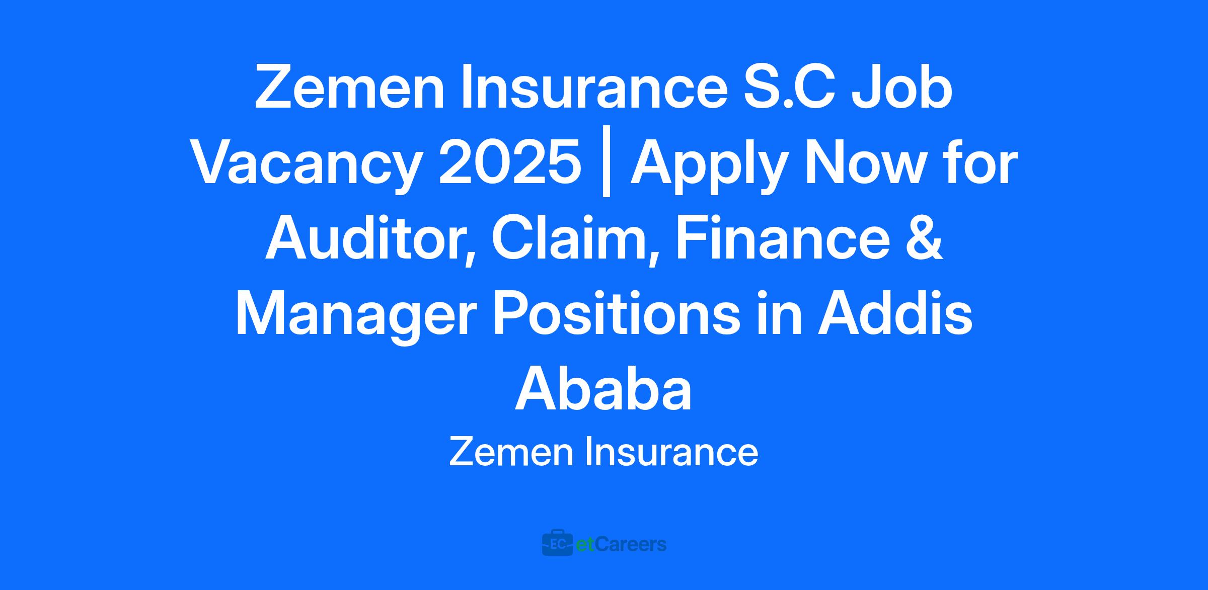 Zemen Insurance S.C Job Vacancy 2025 | Apply Now for Auditor, Claim, Finance & Manager Positions in Addis Ababa
