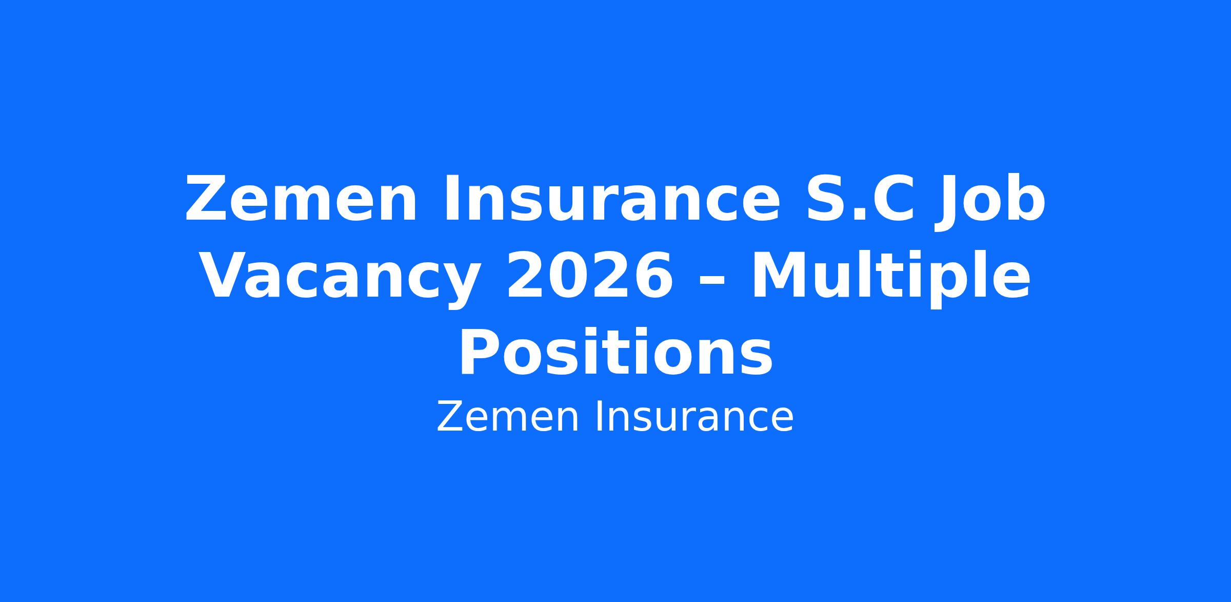 Zemen Insurance S.C Job Vacancy 2026 – Multiple Positions