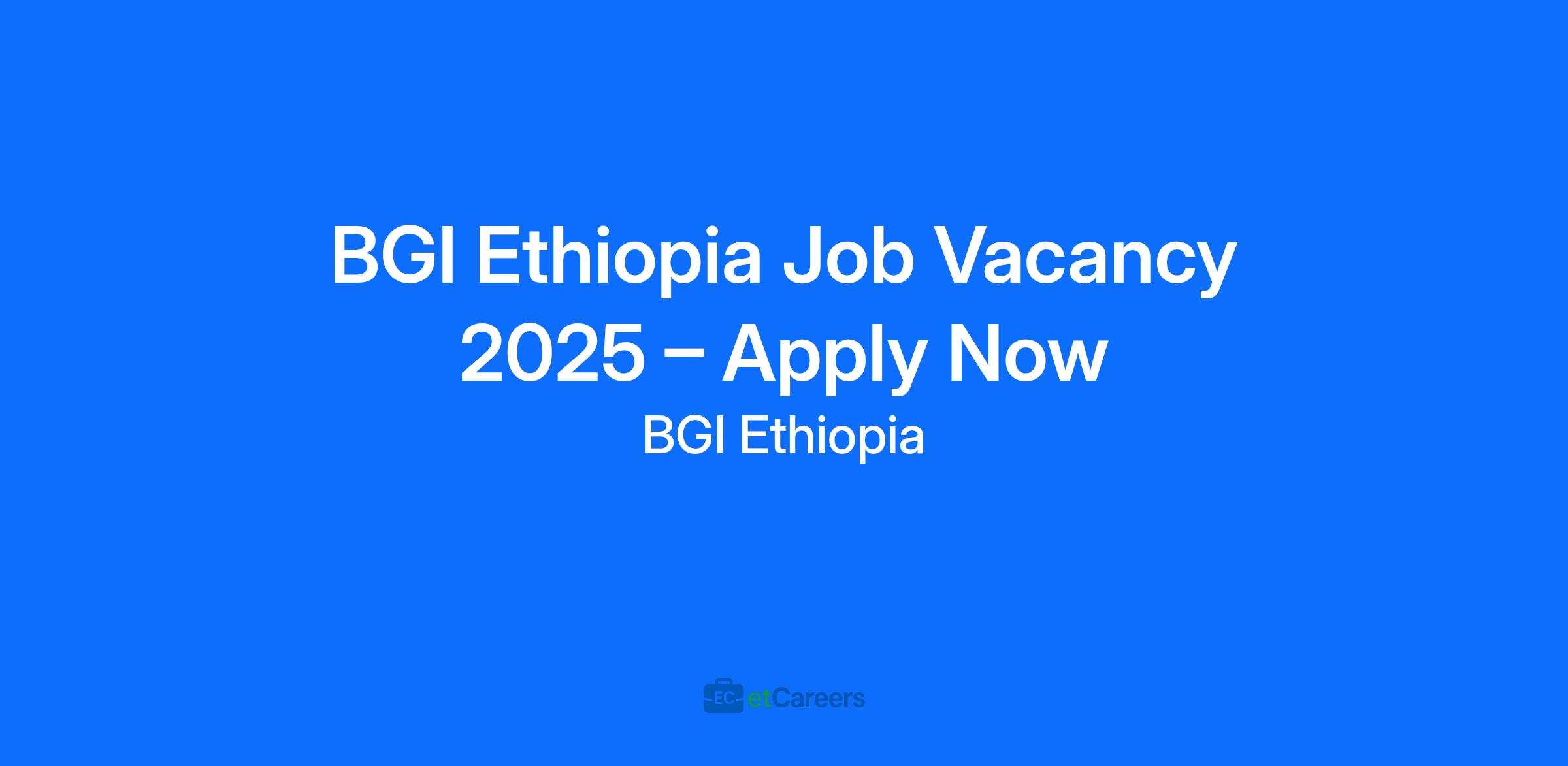 BGI Ethiopia Job Vacancy 2025 – Apply Now