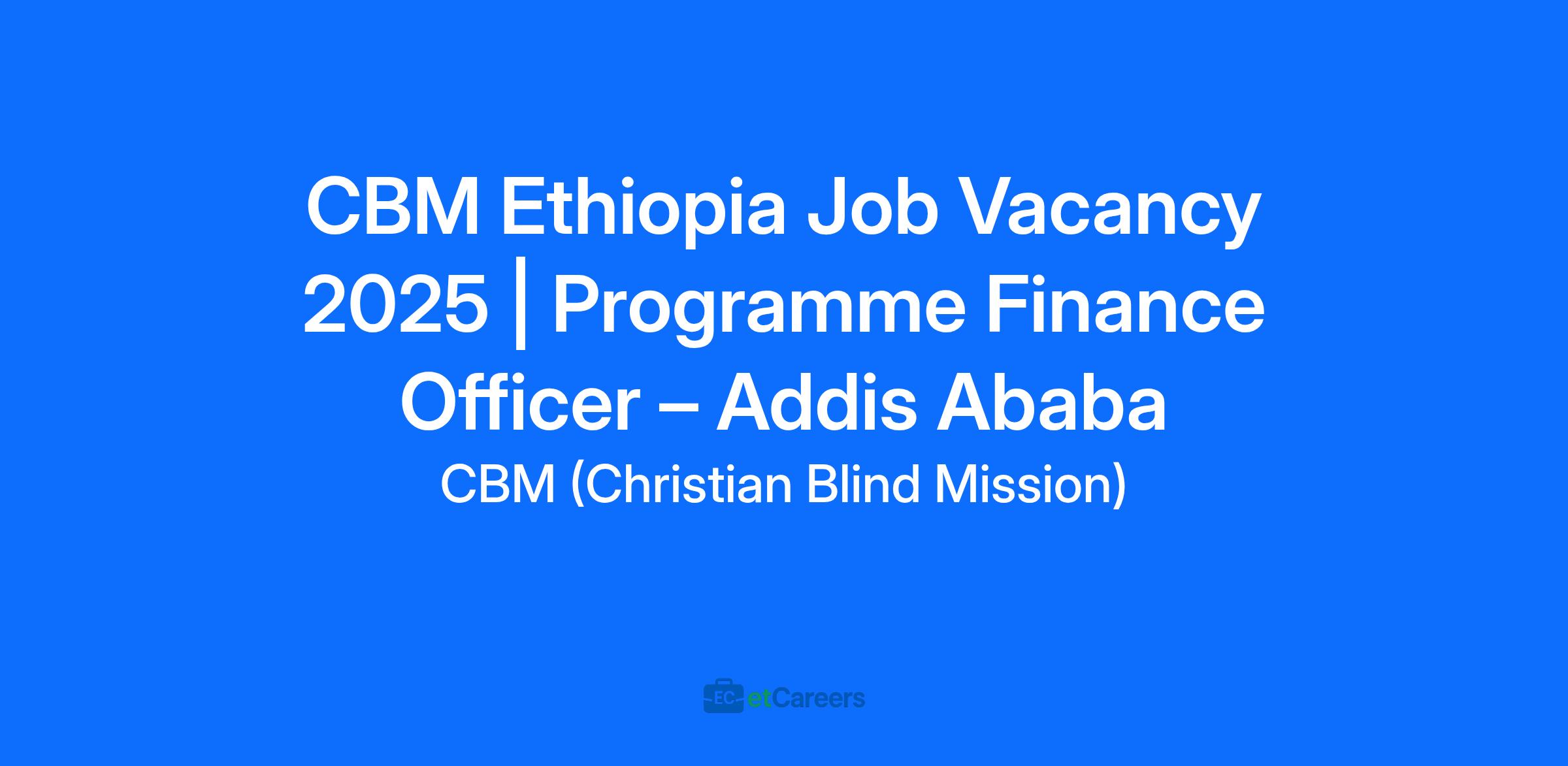 CBM Ethiopia Job Vacancy 2025 | Programme Finance Officer – Addis Ababa