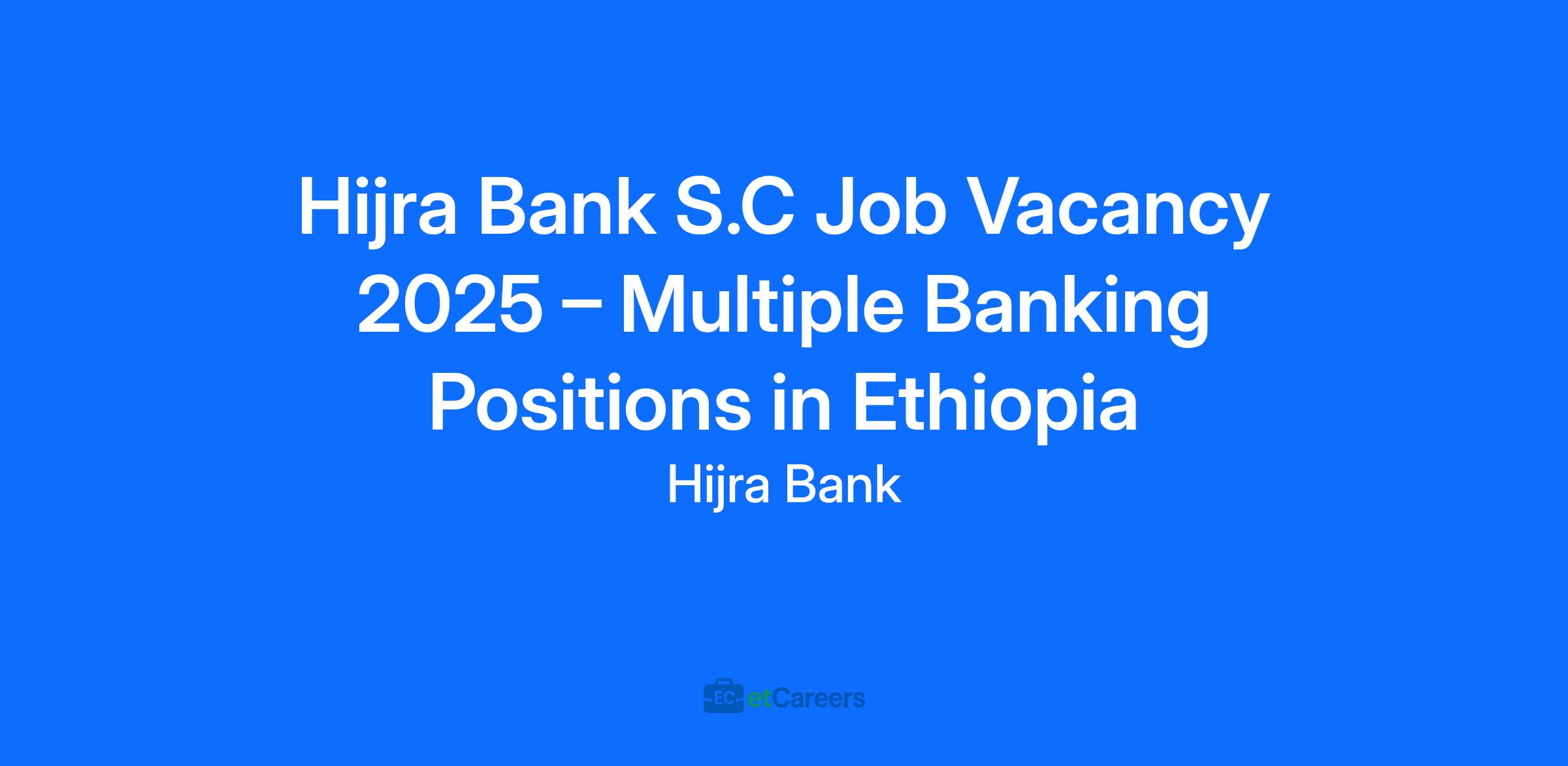 💼 Hijra Bank S.C Job Vacancy 2025 – Multiple Banking Positions in Ethiopia