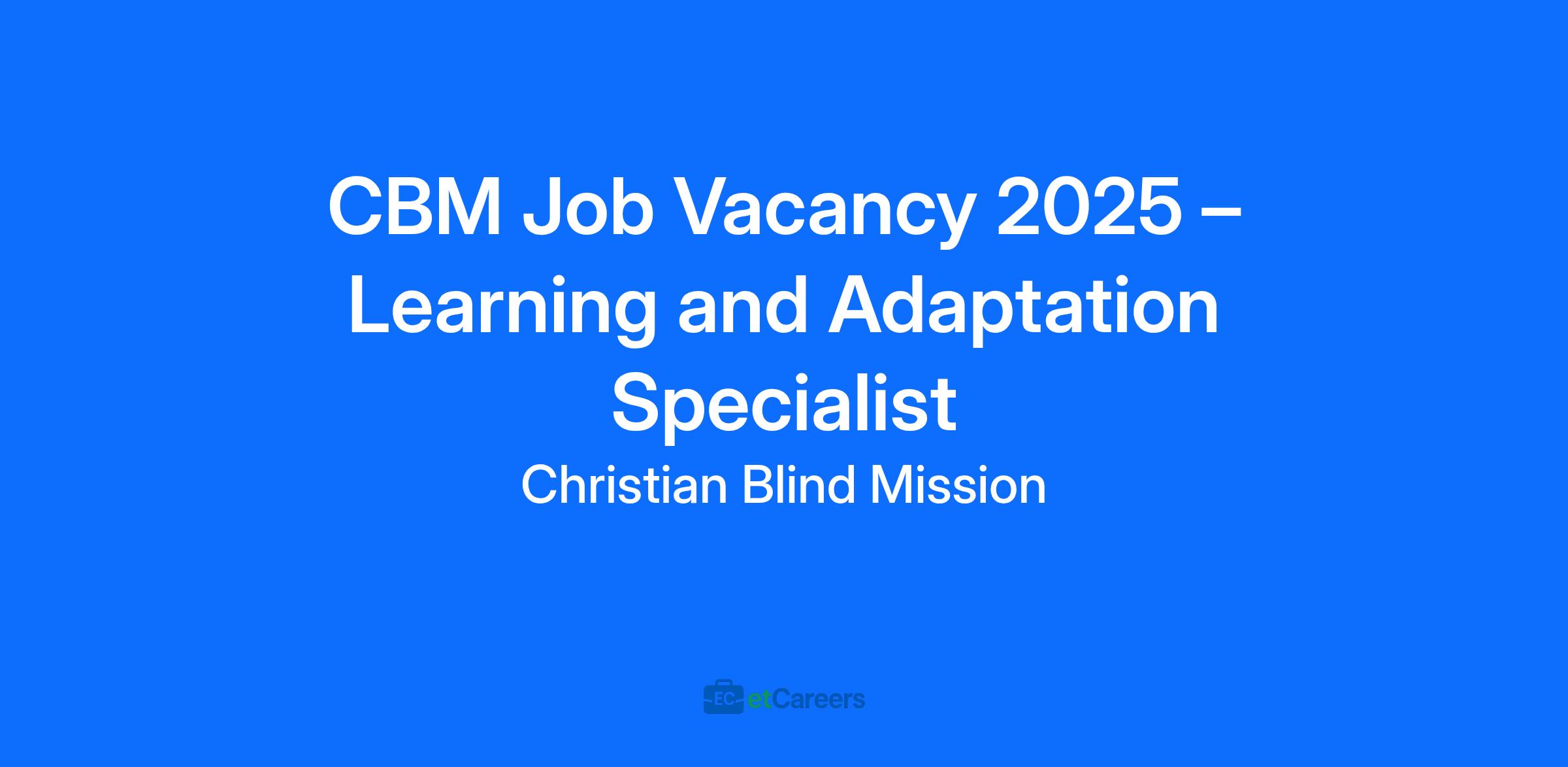 CBM Job Vacancy 2025 – Learning and Adaptation Specialist