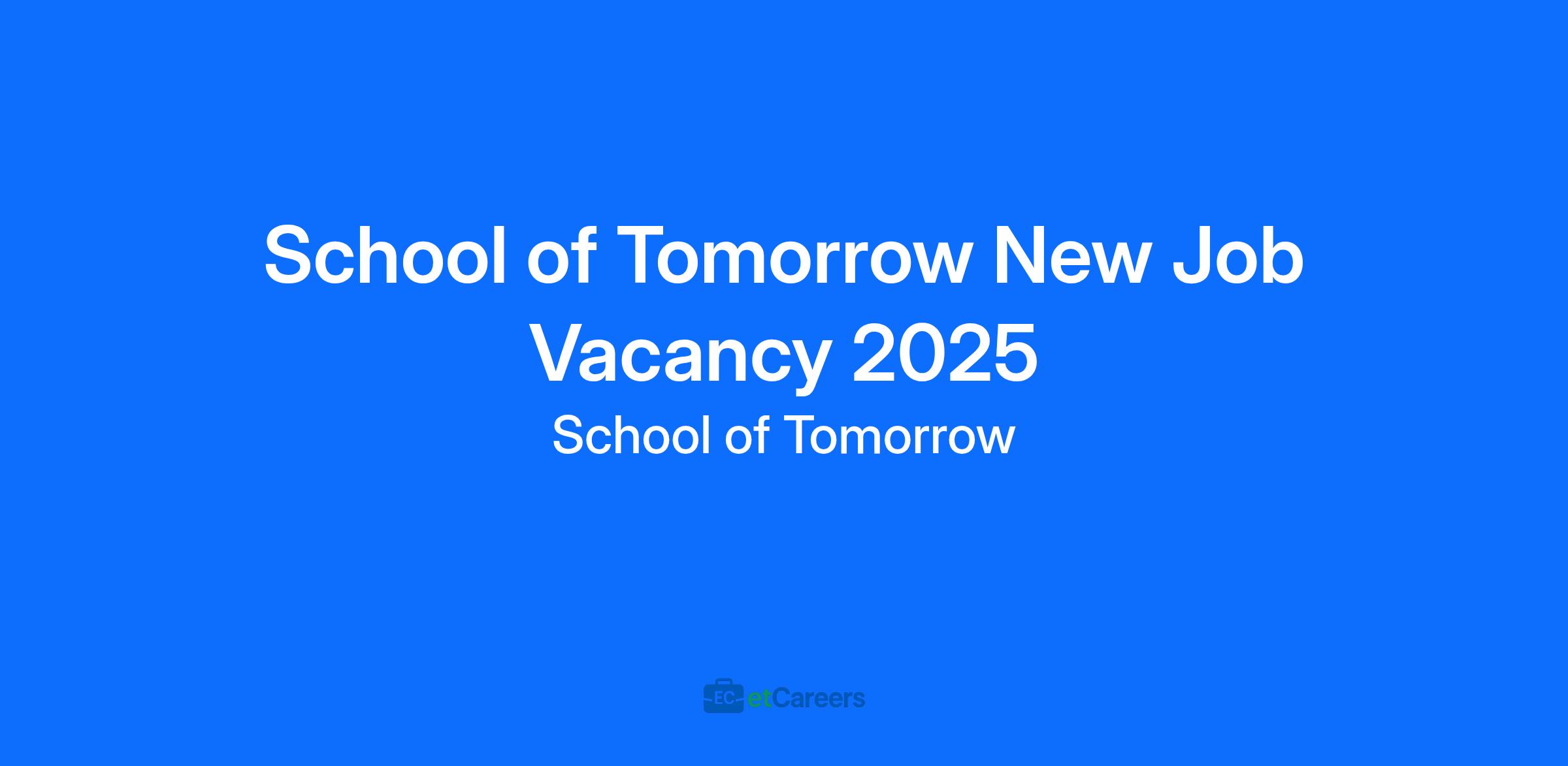 School of Tomorrow New Job Vacancy 2025