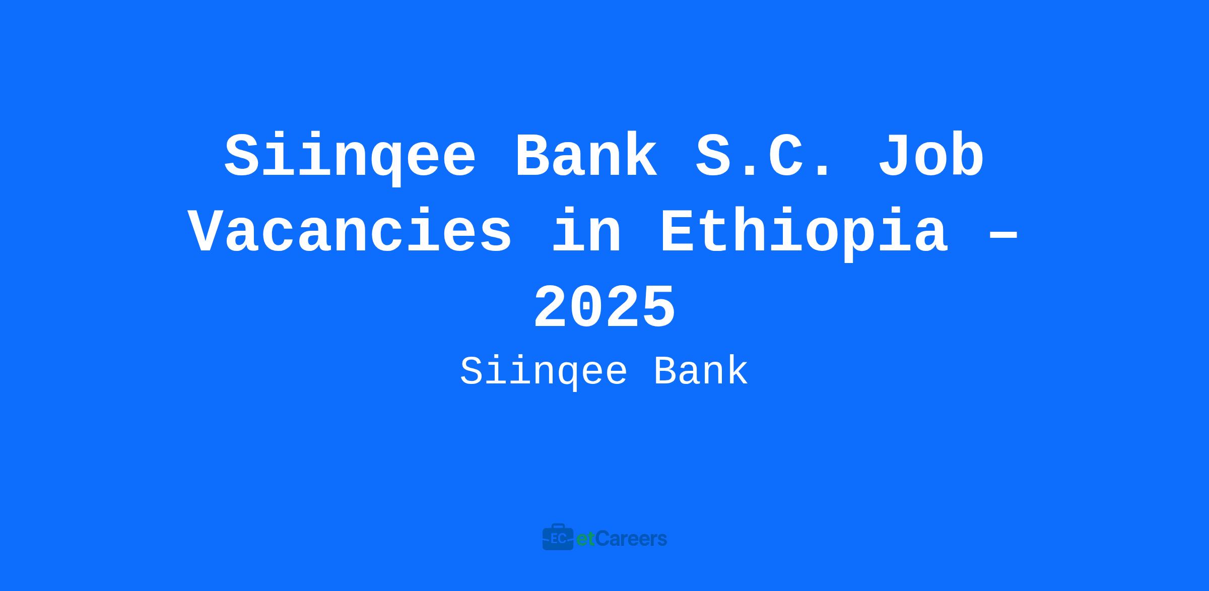🏦 Siinqee Bank S.C. Job Vacancies in Ethiopia – 2025