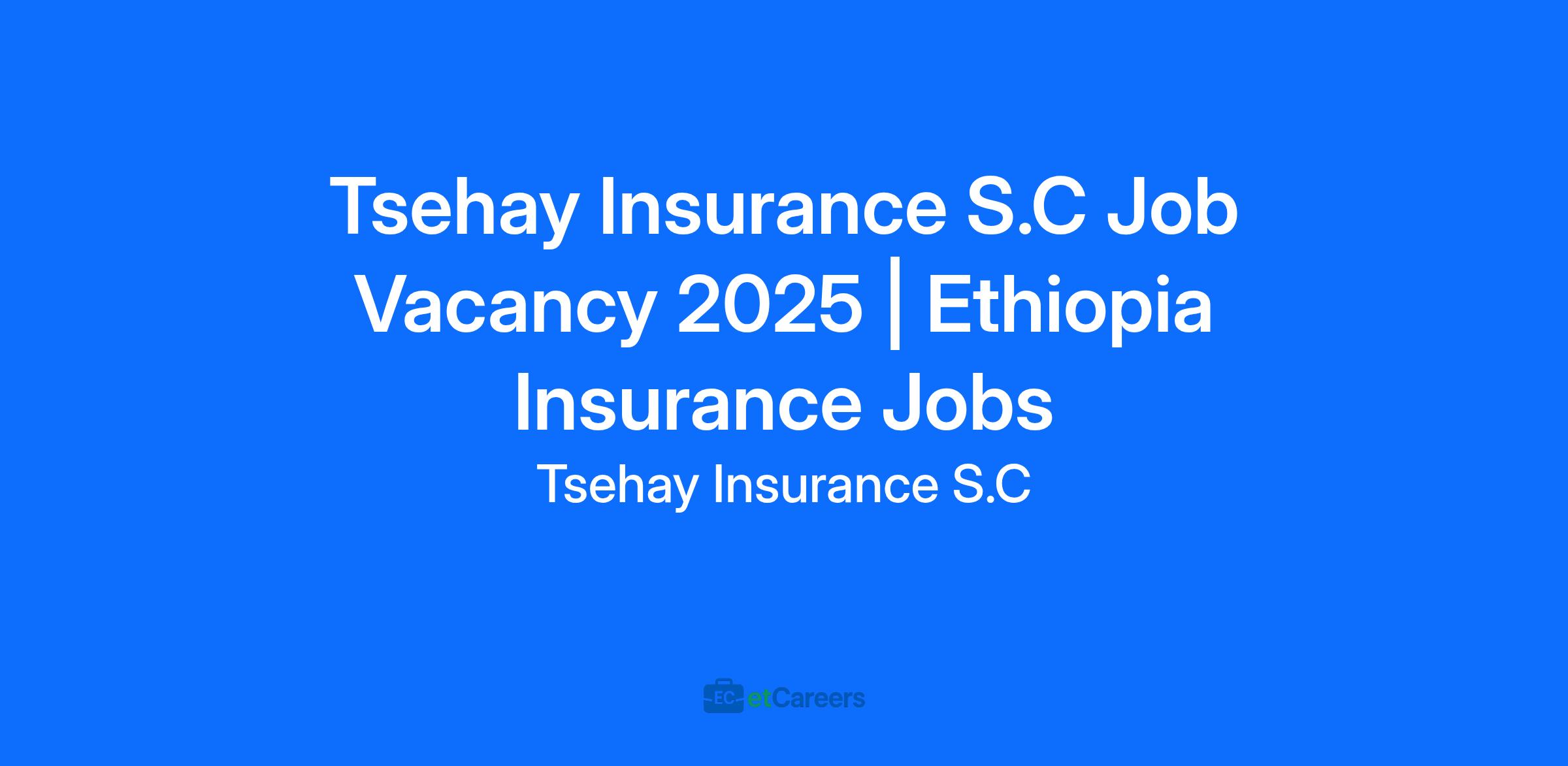 Tsehay Insurance S.C invites qualified and motivated applicants for multiple job openings in 2025. Explore exciting career opportunities in finance, management, administration, and insurance at one of Ethiopiaโs growing insurance companies based in Addis Ababa.